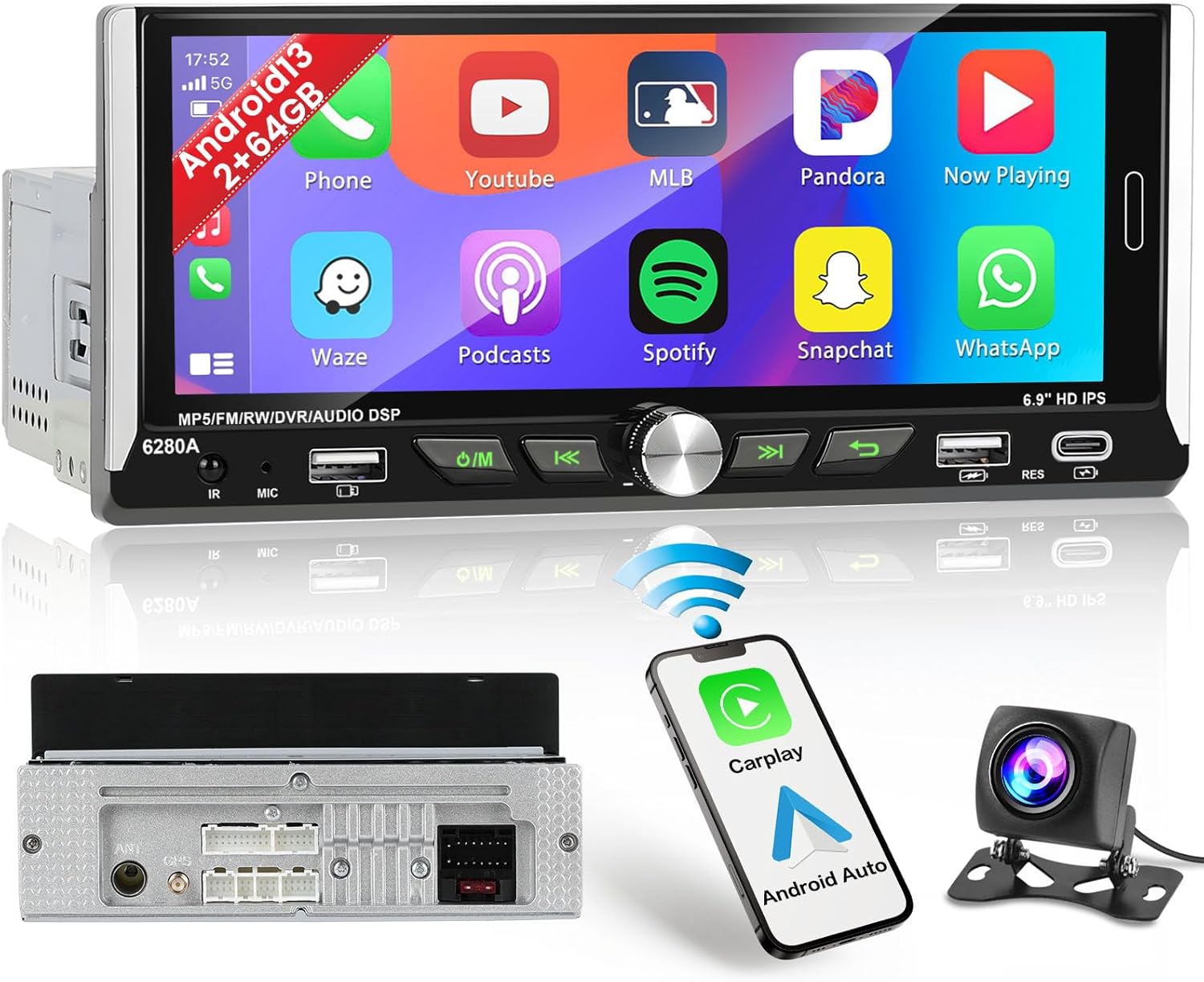 Autoradio 1 DIN Bluetooth Autoradio Car Play Voiture avec sans Fil carplay & Android Auto, 6., 86 Pouces HD Écran Tactile, AM FM RDS Radio/Charge/Microphone/USB/Type C/Commande Vocale/Caméra de recul 【Navigation GPS en temps réel et Bluetooth】 Cet autoradio Apple CarPlay simple DIN offre une navigation GPS précise et en temps réel. Il ne convient pas aux gros camions 24 V. Veuillez vérifier que l'ouverture de votre tableau de bord est compatible avec notre autoradio avant l'achat., 2., Remarque : L'autoradio simple DIN est uniquement compatible avec une sortie CC 12 V-14,4 V. La caméra arrière avec grand angle horizontal de 170° garantit une vue arrière claire et nette. La commande vocale est plus précise grâce au système mains libres Bluetooth simple DIN, pour une conduite plus sûre. Autoradio Voiture GPS Miroir écran Tactile Autoradio 1 Din Bluetooth Mains Libres, 4,1 Pouces Hd Écran Tactile Fm-Am-Rds Poste Radio Radio Voiture Avec Caméra Recul Apple Carplay Autoradio 1 Din Bluetooth Mains Libres Auto Radio à écran Tactile 9 Pouces avec 【Écran tactile IPS HD CarPlay de 6,86 pouces avec Mirror Link】 Autoradio simple DIN compatible avec les systèmes Android et iOS. 【Conseils importants sur Carplay Single Din】1., Format standard 1 DIN, profondeur : 63 mm (2,48). FM 87,5-108 MHz, AM 522-1620 kHz. Ce système autoradio apple Carplay 1-DIN permet d’accéder facilement aux fonctionnalités de votre smartphone. Vous pouvez faire des appels, envoyer des messages et naviguer avec des applications spéciales via l'autoradio à écran tactile simple DIN. Suivez l'état des routes en temps réel, les informations, la météo, etc. 【Radio FM/AM/RDS/EQ】Autoradio 1 DIN avec radio FM/AM intégrée et fonction RDS. Autoradio 1 Din Bluetooth Autoradio Avec Bluetooth Mains Libres Fm Radio Usb Tf Aux In Rca 7... Écoutez vos stations préférées. Pour toute question concernant l'installation et le câblage, nous vous répondrons dans les 12 heures. 【CarPlay et Android Auto sans fil et filaires】 L'autoradio simple DIN amélioré prend en charge Apple CarPlay et Android Auto sans fil et filaire et se connecte automatiquement à votre téléphone sans fil au démarrage.