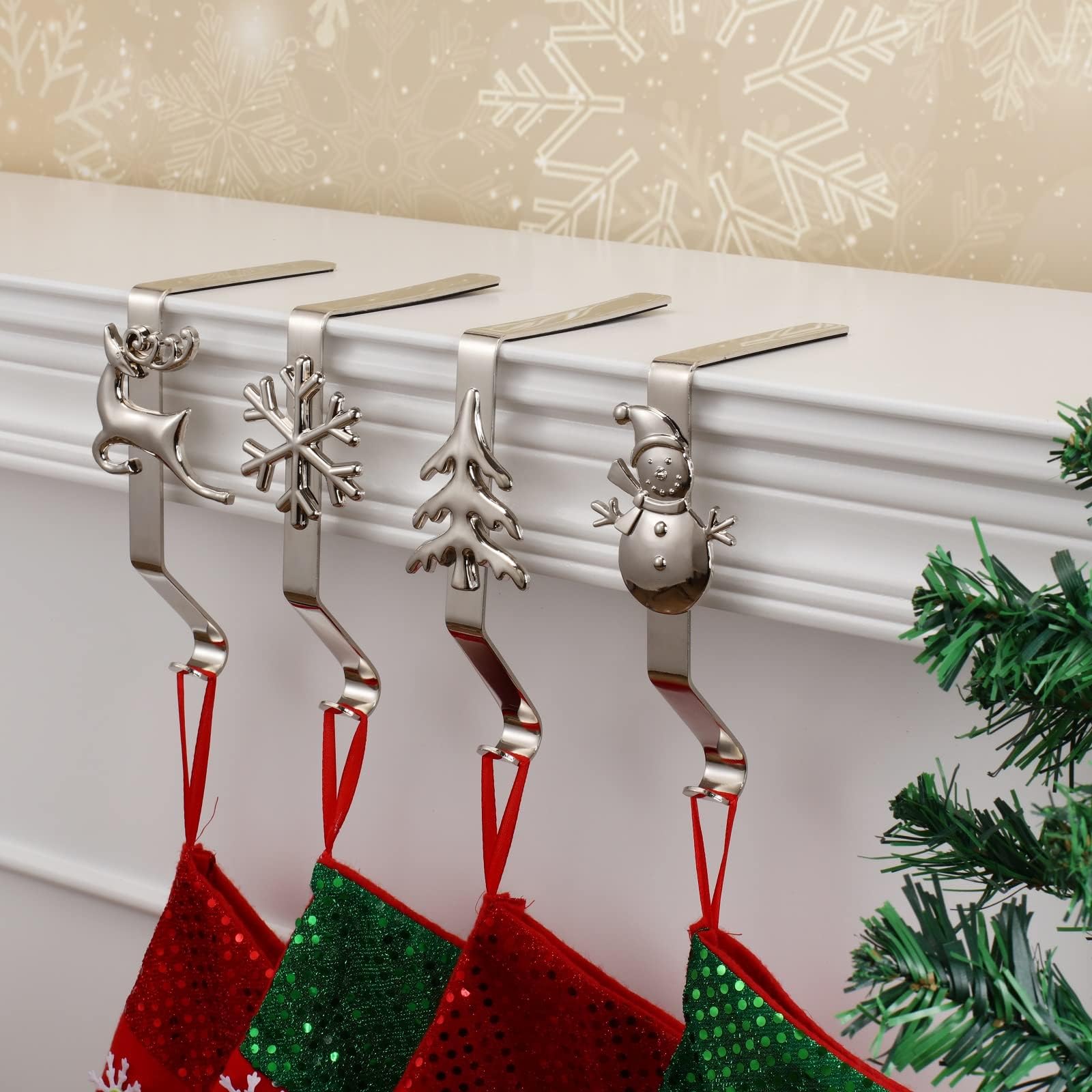 *Nombre de pièces : 4., Contenu de l'emballage : 4 crochets. *Lot de 4 crochets pour chaussettes : ce lot comprend 4 crochets pour chaussettes, offrant un soutien suffisant pour vos chaussettes. Support Chaussettes Noël Antidérapant Crochet Chaussette Noel Palonu Lot De 4 Crochets De Suspension En Métal Pour Chaussettes Accroche Chaussette Noel Porte Chaussette De Noel Support de décoration polyvalent : idéal pour accrocher diverses décorations de Noël telles que des couronnes, des chaussettes, des ornements, des lanternes... Chaque crochet mesure 5,6 cm de largeur, 11,2 cm de profondeur et 0,8 cm de hauteur. Caractéristiques : * Facile et pratique à suspendre : les crochets de Noël offrent une solution simple et efficace pour accrocher des bas de Noël décoratifs dans n'importe quelle pièce. Les crochets disposent d'un coussinet antidérapant pour éviter de glisser et protéger la face de votre cheminée de cheminée. Vérification de la taille de la cheminée : vous vérifiez la taille de votre cheminée avant d'acheter pour garantir la compatibilité avec ces crochets décoratifs. Ils sont légers mais robustes, ne pesant que 0,1 kg. Conçus pour s'asseoir parfaitement sur les cheminées de cheminée, ces crochets offrent un moyen facile d'afficher vos bas. Antidérapant et fiable : conçus pour supporter jusqu'à 4,5 kg, les patins antidérapants sur ces crochets empêchent tout glissement tout en protégeant votre cheminée des rayures. * Construction antidérapante et robuste : fabriqués à partir de métal, ces crochets sont conçus pour supporter le poids des bas lourds, supportant jusqu'à 4,5 kg. Crochets uniques pour chaussettes de Noël : nos crochets de cheminée de Noël offrent 4 types différents au choix, les distinguant des autres supports de chaussettes sur le marché Caractéristiques : * Nom du produit : lot de 4 crochets de cheminée pour chaussettes de Noël., *Matériau : métal. [Accent sophistiqué] Avec leur élégant design doré en volute, ces crochets complètent n'importe quel thème de décoration saisonnière sans submerger l'esthétique générale de votre maison. * Convient à la plupart des cheminées : chaque crochet est conçu pour s'adapter facilement à la plupart des cheminées, que vous pouvez utiliser en toute confiance quelle que soit la taille ou la forme de votre cheminée. 4 Pièces Supports de Bas de Noël Crochets de Suspension de Manteau