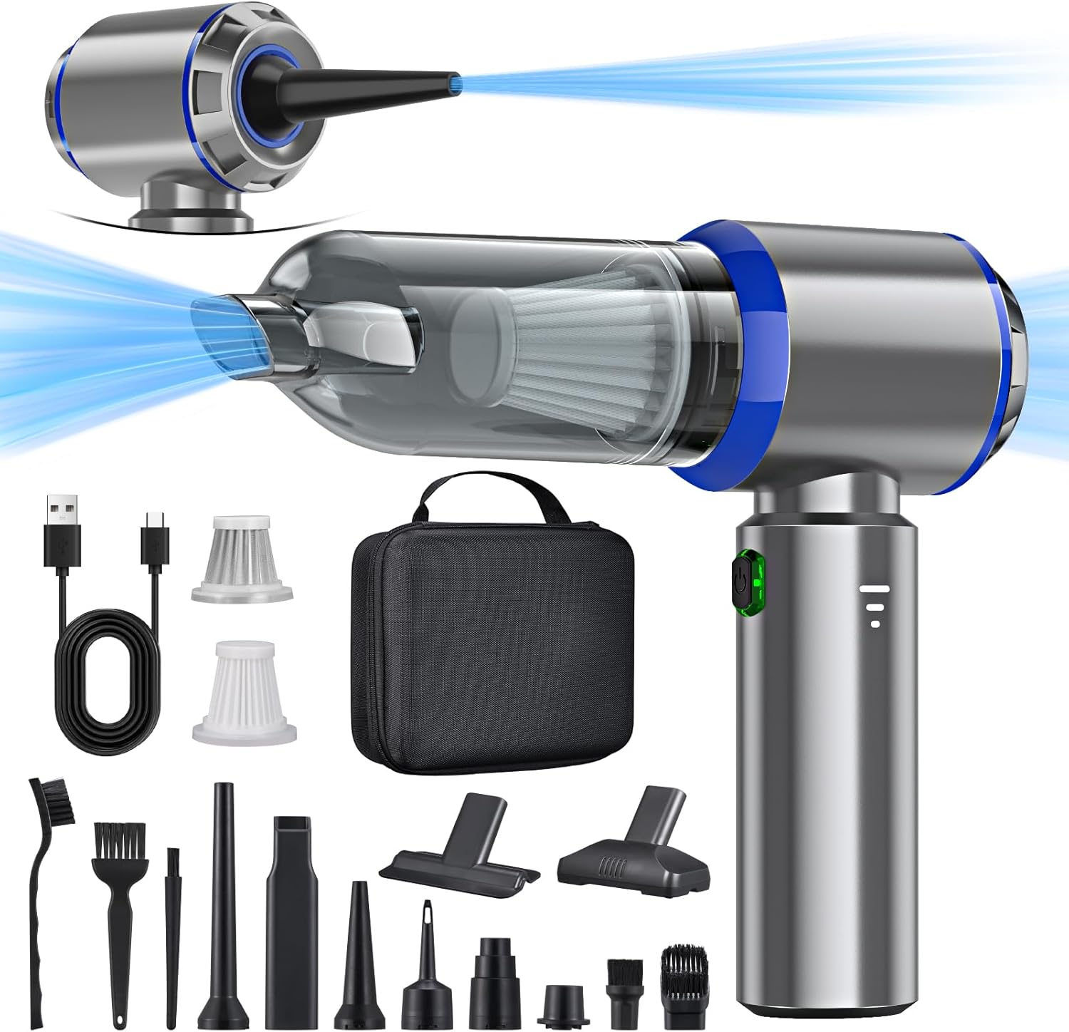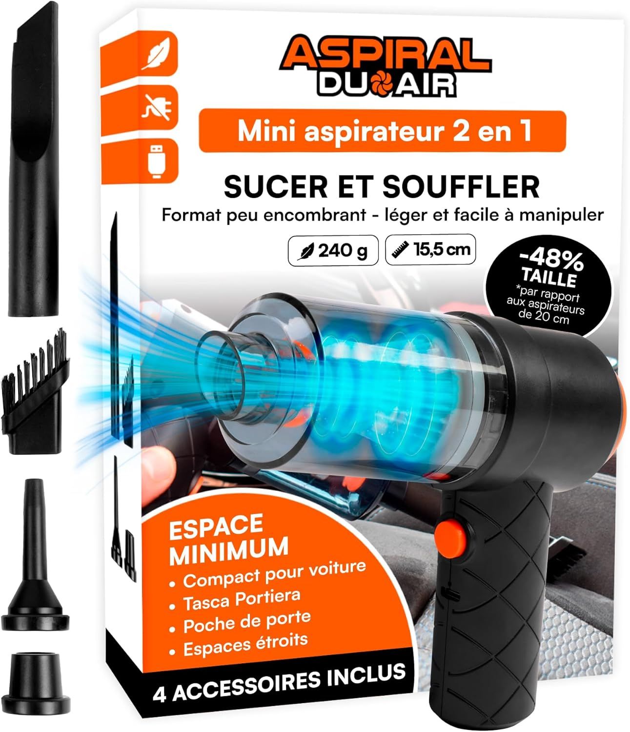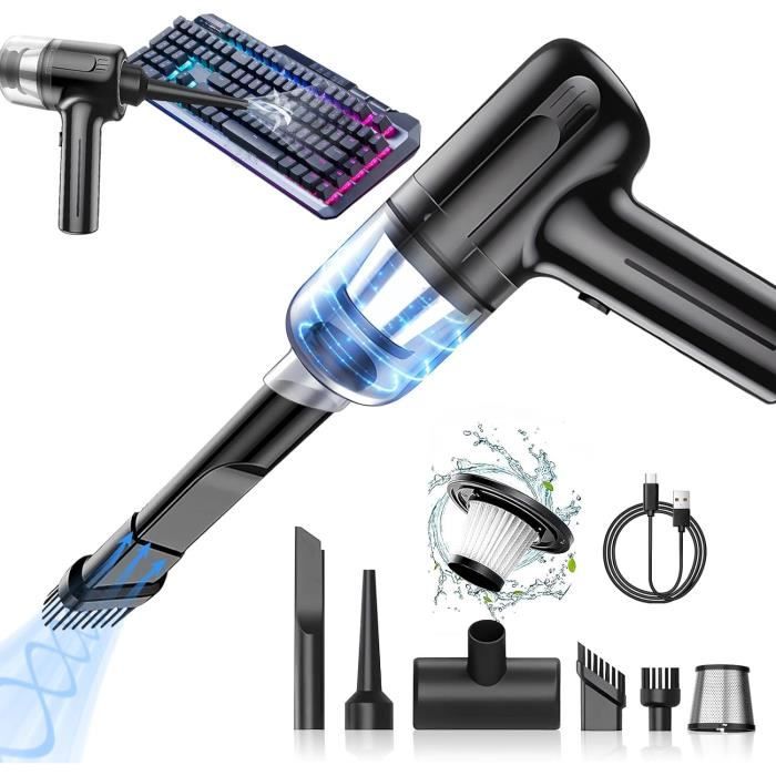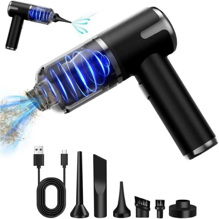 Aspirateur Balai Sans Fil Pour Poil Animaux Aspirateur Main Sans Fil 4 En 1 Ultra-Puissant 22000 Pa Avec Soufflage Aspirateur Moteur Sans Balais Aspirateurs à main Voiture Aspirateur Balai sans Fil sans Sac 2 en 1 HEPA Filtre Aspirateur AivaToba TY-FR-FBA : aspirateur a main sans fil [ autonomie... Il peut être chargé via un chargeur de voiture, une alimentation mobile ou une autre source d'alimentation USB. Nettoyage rapide Cet aspirateur à main sans fil peut être commuté entre le mode économie d'énergie (silencieux, économe en énergie) et le mode de puissance maximale (puissance maximale) en appuyant sur un bouton, éliminant efficacement la poussière, la saleté et les poils d'animaux des tapis et des sols durs. La forte aspiration élimine parfaitement la poussière, la saleté et les poils d'animaux des voitures, canapés, murs, escaliers et zones difficiles d'accès, offrant un contrôle total sur toutes les situations de nettoyage Dans le premier mode, il est économe en énergie et peut être utilisé pendant 30 minutes, dans le deuxième mode, il est puissant et peut être utilisé pendant 15 minutes. Accessoires complets L'aspirateur à main Miecgth dispose d'un filtre facilement remplaçable et d'un bac à poussière transparent de grande capacité, ce qui vous permet de voir quand le bac à poussière est plein à tout moment. Le bac à poussière est facile à enlever, ce qui évite les travaux de nettoyage gênants dus aux fuites de poussière. Léger, compact et facile à transporter L'aspirateur Miecgth est léger, tient bien dans la main, est sans fil et portable et convient pour un nettoyage rapide à la maison, au bureau et dans la voiture. Aspirateur multifonctions 4 en 1:Aspirateur à main équipé d'une large gamme d'outils et d'accessoires,notamment un suceur et une brosse,une brosse à plancher,une brosse soufflante et une buse d'aspiration.Relevez différents défis de nettoyage.La fonction de gonflage permet de gonfler rapidement les objets gonflables tels que les anneaux...