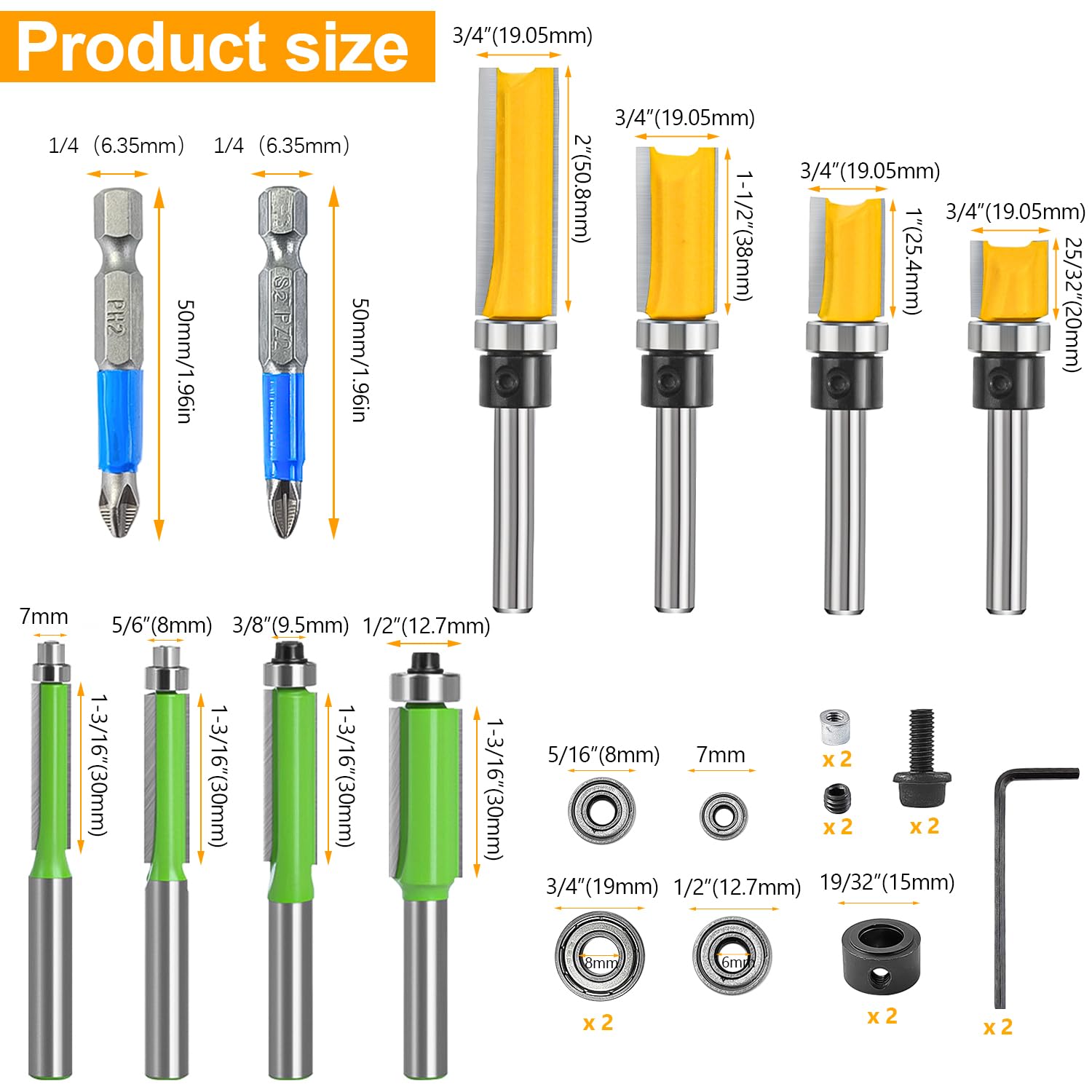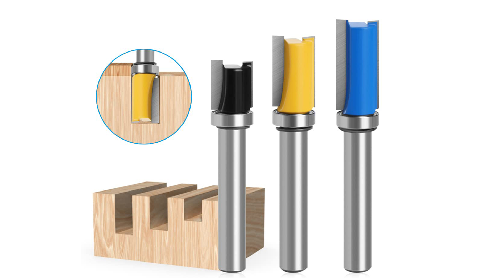 Idéales pour la découpe de tous matériaux composites, contreplaqué, bois dur et bois tendre. Fraise à Copier Carbure 4 Pcs Fraise Defonceuse 8mm,Fraise Pour Affleurer,Per Fraise Affleurer 8mm Description du produit : Matériau : Acier tungstène Couleur : Bleu Contenu de l'emballage : 4 fraises à copier à tige de 8 mm Matériau de qualité supérieure : Ces fraises à copier sont fabriquées en acier tungstène, un matériau dur, résistant à l'usure et robuste. Fonction : Convient pour tous les types de machines à découper et à graver. Pour la finition des chants de bois. Convient pour l'ébarbage des chants, les angles d'écartement en 3D et le rainurage. avec un roulement à billes pour une coupe précise de vos bords en bois.Matériel de Haute Qualité: Fraises pour défonceuses en acier au tungstène rectifié, tranchantes et durables... Elle permet de couper avec précision les stratifiés et les gabarits. 【Fraise à Copier】La fraise à copier offre une excellente précision de rotation, permettant de couper rapidement, en douceur et avec précision les stratifiés et les gabarits, et d'effectuer une affleurement précis des chants en bois. Lntyq 4 Pcs Set Fraise Defonceuse 8mm Tige, Fraise a Copier a Bois... Elles sont compatibles avec tous les types de machines à affleurer et à graver. La tige en acier 45# offre une résistance à la déformation et une résistance à la déformation extrêmement élevées. 【Défonceuse Bois】Pour la finition des chants en bois. Fraise à Copier 8mm - Fraise 4 Flûtes avec Roulement pour Défonceuse, Outil de Menuiserie Bois Large application : Ces fraises à affleurer peuvent couper tous matériaux composites, panneaux de particules, contreplaqué, bois dur et bois tendre, panneaux de fibres à densité moyenne (MDF) et autres panneaux massifs. Défonceuses portables compatibles avec les machines CNC et autres défonceuses automatiques, ainsi qu'avec les machines d'établi et les machines à tension manuelle.