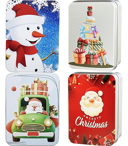 La taille d'une seule boîte : 11,5 x 8,5 x 2,2 cm. Boîte à Biscuits de Noël Carrée Grande - Boite à de Noël 【Dimensions et utilisation】La boite metal biscuit Noel a des dimensions raisonnables (11,5 x 8,5 x 2,2 cm) et une petite capacité. Boite A Bonbon 4 Pièces Boîtes à Biscuits De Noël Boîte En Fer Blanc Avec Idée Cadeau Emballage Cadeau Original Les boite metal biscuit Noel sont parfaites pour ranger des biscuits, des bonbons, de petites cartes, etc. RemarqueVeuillez noter que seul le couvercle de cette boite metal biscuit Noel présente des motifs de Noël, le reste étant de couleur argentée. Une Boîte Cadeau Avec Un Couvercle Ouvert Dessin Au Trait Du Lendemain... Leur format compact et raffiné les rend faciles à transporter, parfaites pour être offertes en tant que cadeaux créatifs à vos proches pendant Noël, transmettant chaleur et vœux, pour un plaisir certain. 【Très pratique】La boite en fer Noel et son couvercle s'emboîtent parfaitement, garantissant la sécheresse à l'intérieur. Pour ajouter une touche festive à votre décoration de Noël, optez pour une boîte métal spécialement conçue pour les fêtes. Ces boîtes décoratives sont idéales pour ranger vos petits cadeaux, vos biscuits de Noël ou simplement pour apporter une ambiance chaleureuse à votre intérieur Veuillez noter que seul le couvercle de cette boite metal biscuit Noel présente des motifs de Noël, le reste étant de couleur argentée. 【Design à thème de Noël coloré】Le couvercle de la boite metal biscuit Noel est orné de 4 motifs uniques d'éléments de Noël, incluant le Père Noël, le bonhomme de neige, la boîte cadeau et le Voiture. Texture fine et durable, elle se nettoie facilement avec un chiffon humide et peut être réutilisée longtemps. Caractéristiques du produitLes couvercles de ces petite boite metallique Noel sont imprimés avec des motifs festifs tels que le Père Noël, le bonhomme de neige, la boîte cadeau, le Voiture, un choix idéal pour créer une atmosphère de Noël intense. Idéale pour ranger des bonbons de Noël, des biscuits, du café, des épices, ou pour stocker des bijoux, des cartes cadeaux et autres petits objets du quotidien., Usages variés.