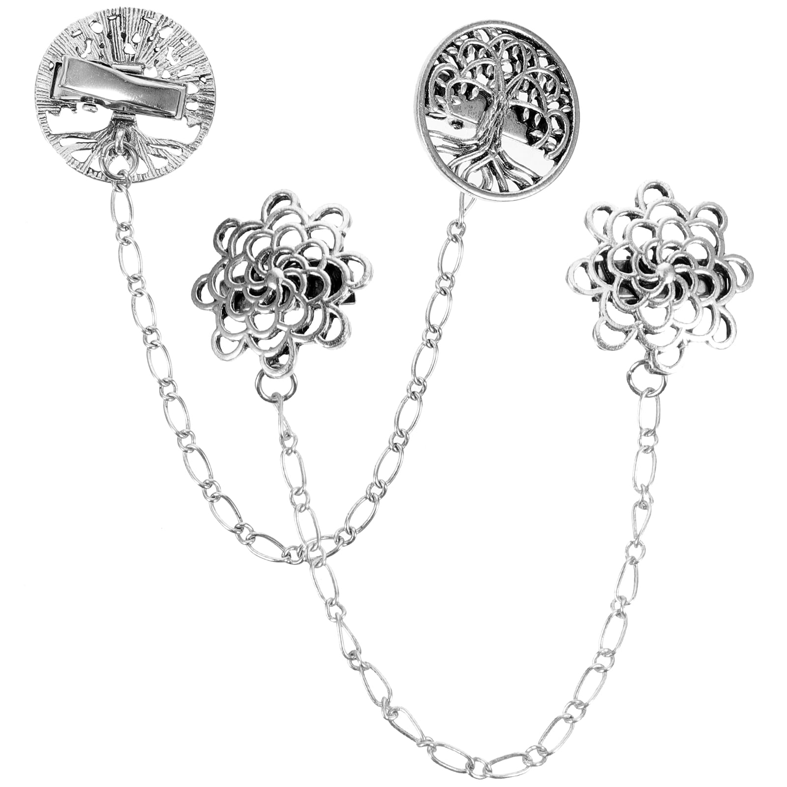 Clips Vintage Pour Robe Chemisier 4 Pièces Vintage Retro Cardigan Clip, Métal Cardigan Clip, Pince à Cardigan, Alliage Cardigan Clip, Strass Cardigan Clip, D'écharpe Cardigan Clip Pour Femme Chemisier Vêtements Veste En Tricoté Clips à Cardigan Rétro Lot de 5 pinces rétro pour cardigan, écharpe, écharpe, pull, châle Gilet-cardigan,Cardigan tricoté à gros boutons pour hommes, tendance... Matériaux Haut de Gamme : Le pinces à pull vintage est méticuleusement fabriqué à partir d'un alliage, d'un tissu et de strass de haute qualité, garantissant une construction solide et durable. Élégant et Raffiné : Le clips vintage pour cardigan présente un design élégant et sophistiqué qui allie à la perfection élégance et raffinement. Qu'il soit associé à une tenue professionnelle formelle ou à une tenue décontractée de tous les jours, il ajoute une touche unique de style à la mode, rehaussant instantanément l'esthétique générale de votre tenue. Caractéristiques Techniques Matériau : Alliage Couleurs : Argent + Or + Noir + Blanc Dimensions : 12 × 3 cm/4,72 × 1,18 pouces Contenu de L'emballage 5 × Pinces à Pull pour Femme Fille Décor Remarques 1., Lorsque vous fixez des vêtements ou des écharpes, évitez de tirer trop fort sur les pinces à cardigan afin de ne pas endommager le tissu et de vous assurer que les pinces ne se cassent pas en raison d'une force inégale., 2., N'exposez pas les cardigan clip avec Bande Élastique à des températures élevées ou à des environnements humides pendant de longues périodes afin d'éviter de les endommager et de réduire leur durée de vie. Il suffit d'ouvrir le bouton-pression et de le fixer au col, à l'écharpe ou à tout autre endroit souhaité, sans aucune étape compliquée, ce qui vous fait gagner du temps et vous évite des efforts. Les designs variés répondent à vos besoins dans différents contextes et avec différentes tenues, vous permettant de mettre en valeur votre goût unique en toute occasion. Large Gamme D'applications : Les clips de chemise peuvent être utilisés pour éviter que les décolletés ne dévoilent trop de peau, pour fixer des écharpes et des châles, pour décorer des cols et des revers, et pour ajouter une touche d'élégance aux pulls et aux cardigans. Quantité généreuse avec différents designs Le paquet contient non seulement un ou deux, mais 5 clips de pull écharpe rétro ; Chacune des 5 pièces porte un style individuel, garantissant un accessoire qui s'adapte à chaque humeur et tenue ; Leur charme convaincant permet une polyvalence, ce qui signifie que vous pouvez les associer à la...