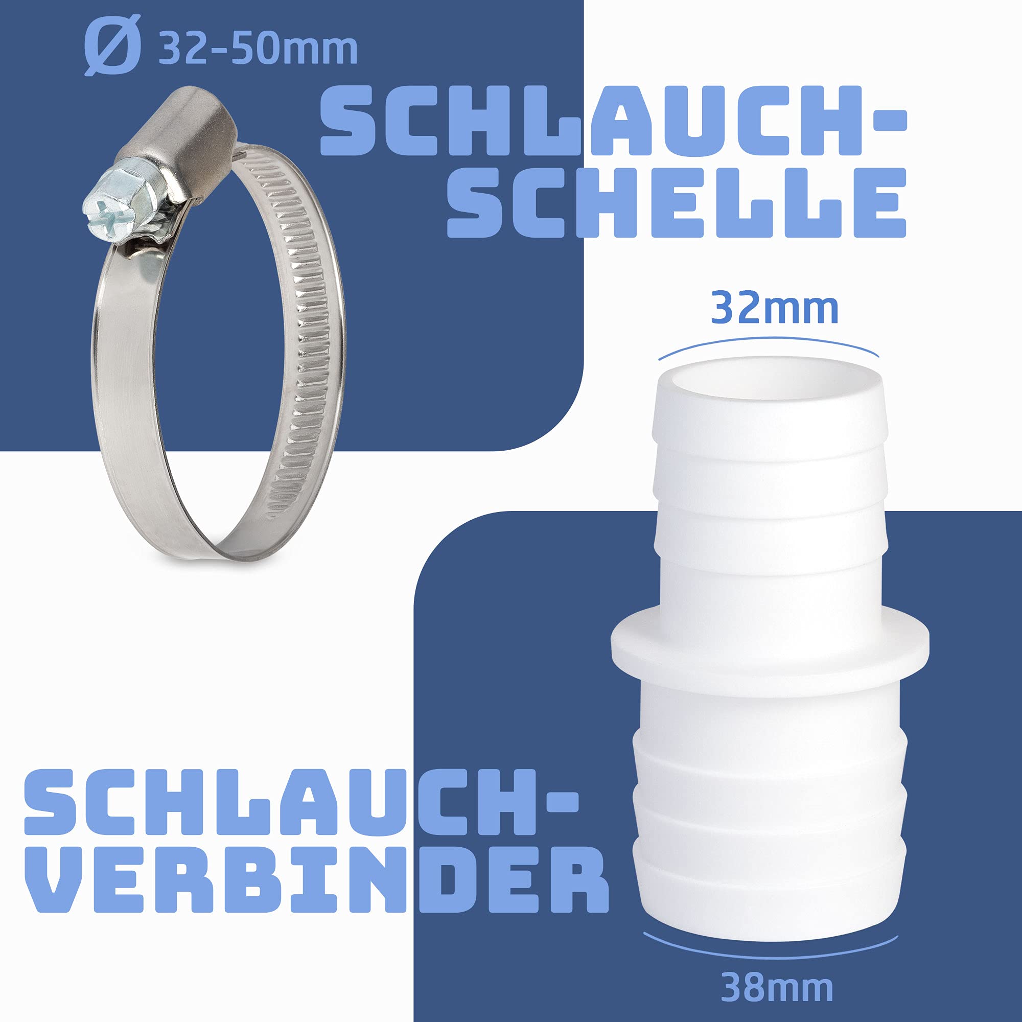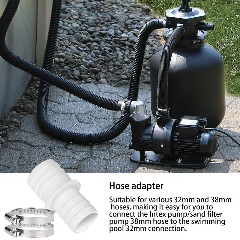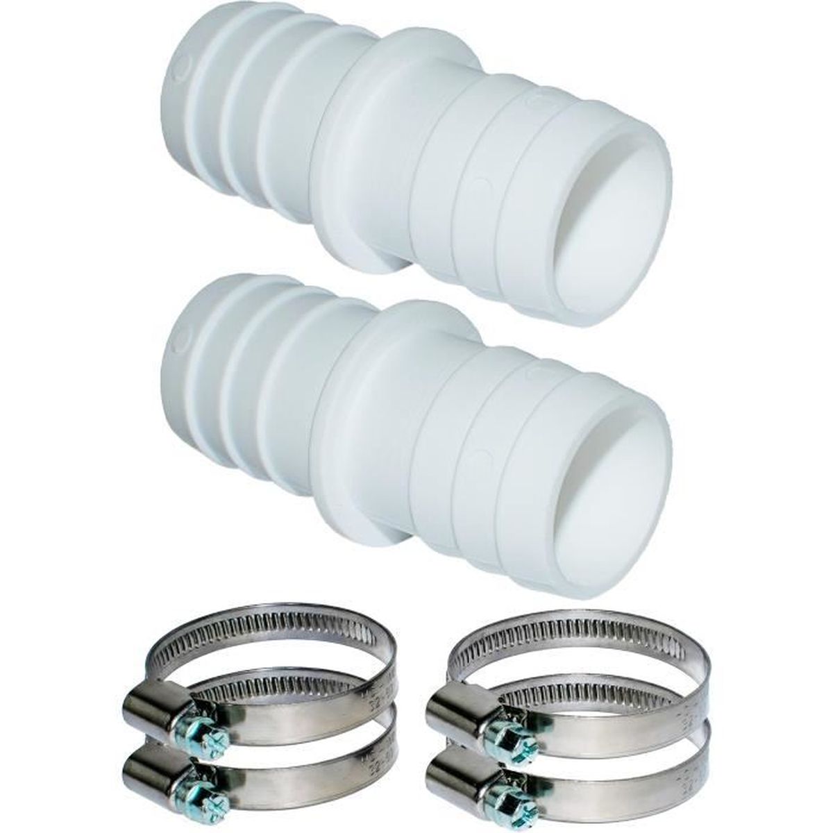 Lot de 2 raccords de tuyau/douille de tuyau - Diamètre : 32 mm à 32 mm - Pour tuyau de piscine. Convient pour connecter ou rallonger un tuyau de piscine... Idéal comme adaptateur pour pompes à filtre à sable, aspirateur de piscine ou tuyaux sur les pompes submersibles ANYUNKEY Le raccord de tuyau est en polypropylène très résistant et est donc particulièrement durable Accessoire Plomberie Piscine Jardin Lot De 4 Raccords De Tuyau De Piscine De 32 Mm à 32 Mm - Avec 4 Colliers De Serrage En Acier Téflon Plomberie Piscine Lors de l'installation, il faut toujours enrouler un ruban en téflon afin qu'il soit vraiment étanche Ce collier de prise en charge (ou selle de branchement) est conçu pour un tube rigide en 2 pouces, avec une sortie en 3/4 pouce FTP pour y visser tout... Contenu : 2 raccords de tuyau de piscine de 32 mm, 4 colliers de serrage en acier inoxydable, ruban en téflon de 12 m VDL Raccord PVC Femelle à visser avec partie filetée taille 11/2 pour tuyau souple 32 mm de diamètre - PVC/Raccords vers tuyau souple - - Aquariophilie