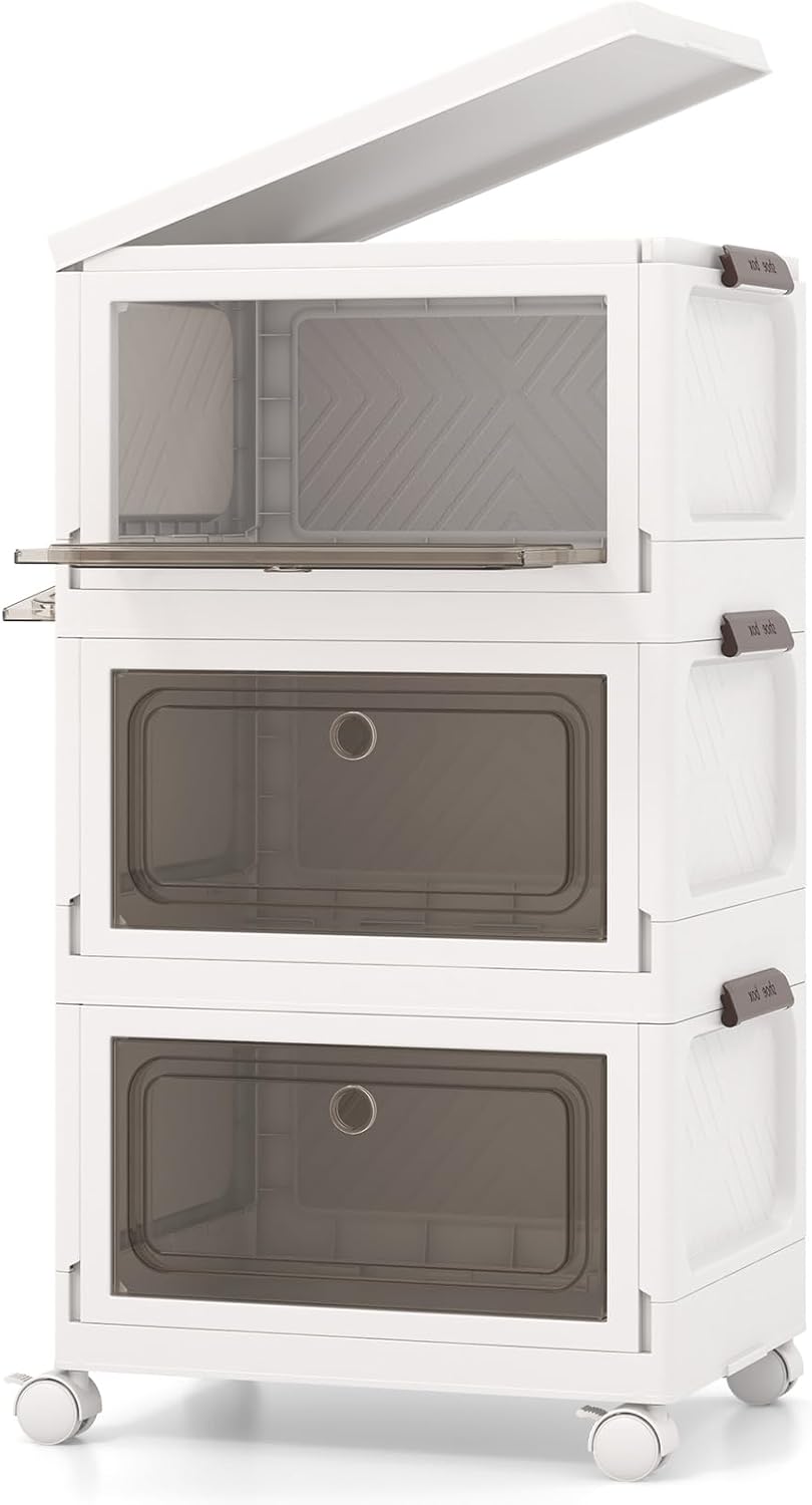 Avec leur loquet magnétique sécurisé et leur poignée pratique, accéder à vos affaires est facile. GOPLUS Bacs de Rangement 3 Niveaux-Boîtes Construction en PP de Qualité Supérieure : Fabriqués en plastique de haute qualité résistant aux chocs, ces bacs de rangement pliables sont conçus pour durer. Boîte Transparente Rangement Lot De 3 Boîtes De Rangement Empliable, Portes Transparentes 4 Roulettes Universelles 2 Ouvertures Armoire Pliable En Pp Avec Convercle 75 L 96690620 Boîtes Rangement Empilables Grâce à leur conception pliable, ils se replient à plat lorsqu'ils ne sont pas utilisés. BONS POINTS: Comprend 3 bacs de 75/105 L pour ranger divers articles Fabriqué en plastique résistant aux chocs et imperméable pour une durabilité accrue Livré avec 4 roues universelles pour un transport facile, dont 2 avec freins La conception empilable permet une utilisation optimale de l'espace vertical, idéale pour les espaces restreints Dispose d'une ouverture par le haut et d'une porte frontale pour un accès facile Le loquet magnétique maintient les couvercles bien fermés pour protéger les articles stockés Chaque bac peut être replié à plat lorsqu'il n'est pas utilisé, ce qui permet un gain de place précieux Ce bac empilable à 3 niveaux ne possède qu'un seul couvercle supérieur INFOS SPÉCIFIQUES: Couleur : Blanc crème + Marron transparent Matériau : PP Dimensions de chaque bac : 41 x 31,5 x 23 cm (L x l x H) Dimensions du bac plié : 41 x 31,5 x 5,5 cm (L x l x H) Dimensions intérieures de chaque bac : 38 x 28,5 x 22,5 cm (L x l x H) Hauteur des 3 bacs empilés : 72,5 cm Capacité de chaque bac : 25 L Capacité totale : 75 L Poids total : 15 kg Poids net : 3,3 kg CE QUI VOUS RECEVREZ: 3 x bacs de rangement 1 x guide d'utilisation Grande Capacité de Rangement : Ce lot de 3 bacs de rangement empilables offre une capacité totale de 75/105 L, offrant un espace généreux pour ranger livres... Ils sont parfaits pour un transport rapide et un rangement flexible dans n'importe quelle pièce de la maison. Double Ouverture : Accédez facilement à vos objets grâce à 2 options d'ouverture : une ouverture par le haut et une ouverture par la porte. Marque. GOPLUS · Couleur. Blanc Marron · Matériau. Polypropylène · Usages recommandés pour le produit. Stockage polyvalent de vêtements, chaussures, jouets... Leur structure empilable optimise le rangement vertical, ce qui en fait une solution idéale pour les placards, armoires et autres espaces restreints. Conception Compacte et Pliable : Les boîtes de rangement sont pliables, ce qui permet de les replier à plat lorsqu'elles ne sont pas utilisées. Le loquet magnétique maintient les portes bien fermées, tandis que les poignées en TPR poignées rondes découpées permettent une ouverture et une fermeture fluides et sans effort. Il permet un rangement vertical tout en gardant vos objets bien organisés. Mobilité Facile grâce aux Roulettes : Équipés de 4 roulettes universelles (dont 2 avec freins), ces bacs de rangement pliables avec couvercle sont faciles à déplacer et verrouillables.