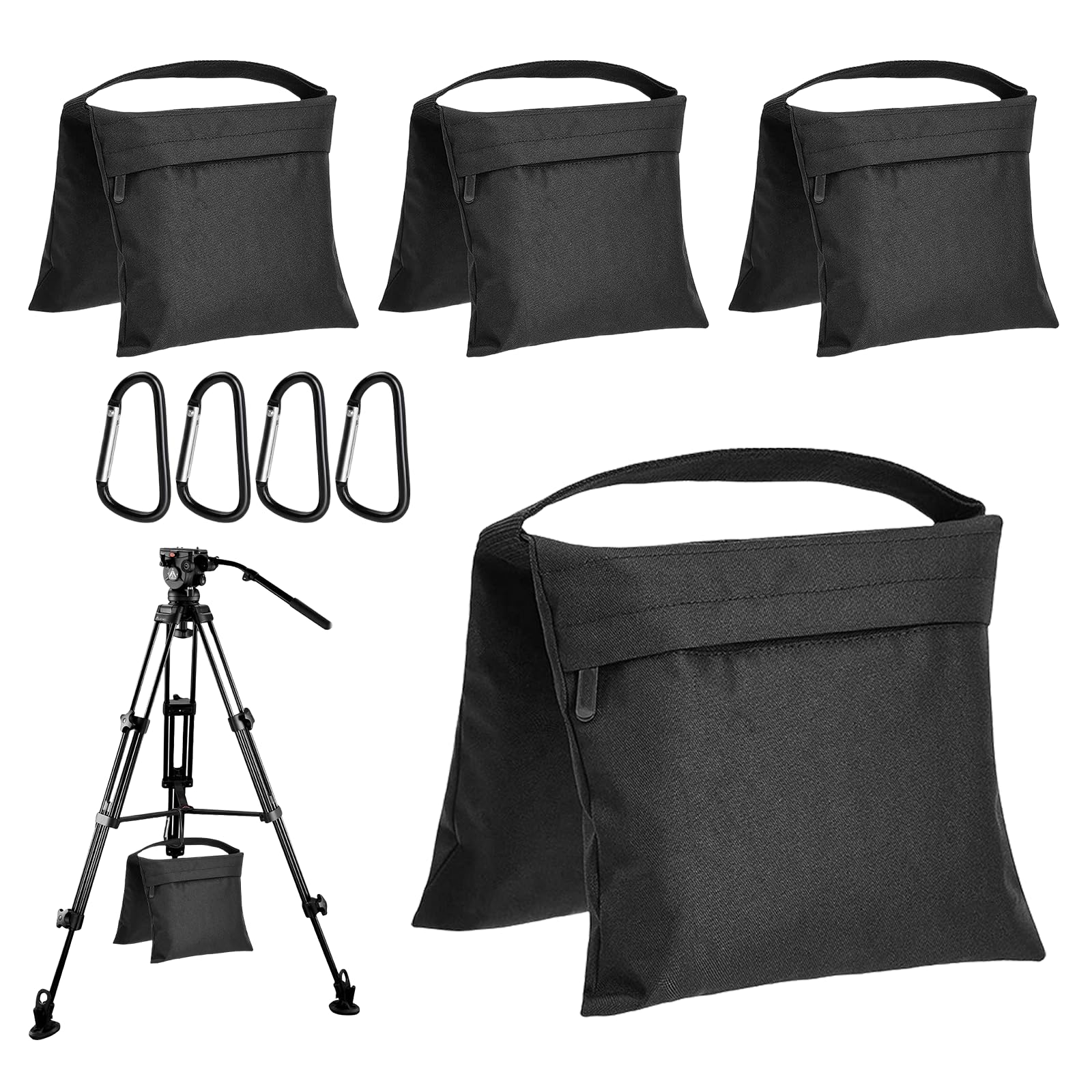 Caractéristiques du produit : Matériau : tissu Oxford Dimensions du sac de sable : 53,2 x 30,5 cm Dimensions du sac : 30 x 25 cm., Couleur : noir. Accessoire Studio Photo Pour Photographie - Lot De 4 Sacs De Poids Robustes Pour Photo Et Video Studio Debout Dans L Arriere Cour Patio Sports Sac En Pp Transparent Et Clips Inclus Sacs De Sable Les mousquetons fournis permettent une fixation rapide, ce qui réduit le risque d'accident et protège votre précieux équipement photo contre les dommages causés par les chutes. Matériaux de qualité supérieure : les sacs de sable pour photographie sont fabriqués en tissu Oxford durable, qui se caractérise par une grande résistance à la déchirure et une longue durée de vie. Étanchéité et étanchéité : sacs de sable pour photographie en tissu Oxford haute densité, connu pour sa durabilité et sa résistance à la déchirure. Alors que le sac de sable vide photographique est pratique à transporter et à ranger grâce à son design léger, ce qui augmente le confort d'utilisation Lot de 4 sacs de sable photographiques vides avec 2 pochettes Étanchéité efficace : grâce à ses propriétés imperméables, le contenu et la stabilité sont maintenus même sous la pluie ou l'humidité. Précautions d'emploi : Assurez-vous que les sacs sont bien fermés pour éviter les fuites de sable Ne pas trop remplir pour éviter d'endommager le matériau. Les mousquetons fournis permettent une fixation rapide, parfait pour une utilisation polyvalente. Les matériaux de qualité supérieure du sac de sable vide photographique offrent une protection fiable contre les influences extérieures et le rendent idéal pour une utilisation dans différents environnements Contenu de la livraison : le kit contient 4 sacs de sable pour la photographie, 4 mousquetons pratiques et 8 sacs étanches. Lot de 50 sacs de sable en polypropylène - 40 x 60 c - Protection... Lot de 4 sacs de sable vides pour studio photo, équipement vidéo, ensemble de sacs de sable vides pour toile de fond, trépied photo, auvent, tente pop-up... Idéal pour différents environnements et applications. Les sacs de sable vides photographiques offrent protection et flexibilité. Tenir à l'écart des objets tranchants pour prolonger la durée de vie. WANDGU Lot de 4 sacs de sable vides pour photographie avec 4 mousquetons et 8 sacs de sable vides en tissu Oxford pour studio photo, trépied, photographie en extérieur et camping (noir) Caractéristiques du produit : Matériaux de haute qualité : les sacs de sable pour photographie en tissu Oxford robuste offrent une résistance à la déchirure et une fiabilité accrues.