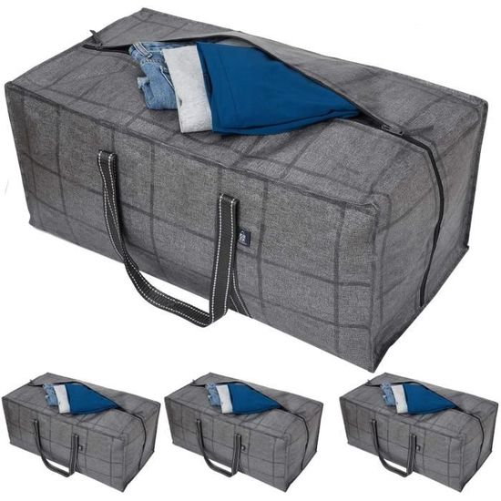 Lot de 4 sacs transparents extra larges à fermeture éclair Une excellente alternative aux cartons de déménagement : ces sacs de rangement à fermeture éclair sont parfaits pour emballer vos affaires lors d'un déménagement et remplacent avantageusement les cartons classiques Rangement Saisonnier Housses Transparentes Lot De 4 Sacs De Rangement Transparents Extra Larges Pliables Plastique Robuste Réutilisable Déménagement Dimensions extra-larges : avec ses dimensions généreuses de 90 x 120 cm, il peut facilement accueillir des articles volumineux tels que des couettes, des vêtements et de grandes peluches. Construction robuste : fabriqué à partir de plastique de première qualité, il offre une résistance et une solidité exceptionnelles. Dimensions extra-larges : avec ses dimensions généreuses de 90 x 120 cm, il peut facilement accueillir des articles volumineux tels que des couettes... Rangez plusieurs articles à la fois pour répondre aux besoins importants de votre foyer en matière de rangement. Résistant aux dommages et conçu pour un usage répété, il offre une protection fiable et durable aux articles stockés. Applications polyvalentes : convient pour le stockage, la protection contre la poussière et l'emballage de divers articles, notamment des vêtements, des couettes, des peluches, des plantes d'intérieur, des bagages et des meubles. Qu'il s'agisse de stocker des vêtements saisonniers, de la literie ou de protéger vos biens lors d'un déménagement ou de travaux de rénovation, il garde vos articles propres et au sec.