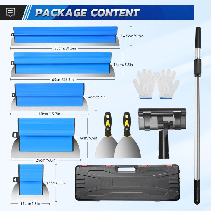 Grattoir à Peinture - Non spécifié - 4pcs - Acier inoxydable - Poignée ergonomique - Multi-usages - Bricolage Mophorn Ponceuse pour cloisons sèches 750W, ponceuse électrique pliable... Spatule Acier Inox Manche Z Ergonomique Spatule Enduit Lissage Set, 40 Cm Couteau A Enduire Outil Parfait, Perfect Lisse Outil Parfait, L'outil Parfait, Couteau Enduit, Outils Plaquiste Pour Le Plâtrage De Plafond Et Mur Couteau Multifonctions Spatule de Surface Professionnel en Acier Inoxydable La propriété antirouille garantit non seulement une longue durée de vie,mais également des résultats propres et sans rayures lors des travaux dans les coins Spatule Enduit, Couteau à Enduire 40c Lae D'écréage Pour Cloison... MATÉRIAU DE HAUTE QUALITÉ - Notre ensemble de spatules pour cloisons sèches en acier inoxydable de haute qualité combine la flexibilité pour des mouvements de spatule précis avec une forte durabilité qui résiste même pendant les travaux de plâtrage stressants. CONCEPTION ERGONOMIQUE DE LA POIGNÉE EN FORME DE Z - Notre ensemble d'outils de spatule impressionne par une poignée innovante en forme de Z qui optimise le confort et l'efficacité du travail. APPLICATION POLYVALENTE – Outil de plâtrage idéal pour une utilisation dans les rénovations de bâtiments anciens,la mise au point de rénovations d'appartements ou les réparations rapides dans les établissements commerciaux. En cas de dommage ou d'usure,les lames de lissage peuvent être rapidement remplacées - une procédure simple qui facilite également le nettoyage,car les lames sont faciles à nettoyer