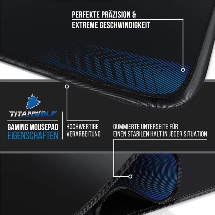 Titanwolf - Quand il devient brutal sur le terrain, un fidèle compagnon vous aidera. Cette surface uniforme améliore la précision de la souris La plupart des tapis de souris standard offrent un glissement limité en raison d'une structure de tissu souvent mal traitée. Tapis De Souris XXL Pour Gaming Titanwolf XXL Speed Tapis De Souris De Jeu 900 X 400 Mm, XXL, Sous-main Grande Taille, Avec Motif Titanwolf, Améliore La Précision Et La Vitesse, Antidérapant, Durable Tapis De Bureau Tapis de souris. CHF22.95. Titanwolf Tapis de souris de jeu, 900 x 400mm XXL Tapis de souris - améliore la précision et la vitesse. 177. Tapis de souris de jeu... Tapis antidérapant pour des heures de jeu sans perte de confort : La surface lisse et fine garantit que tous les mouvements de la souris sont transférés avec précision sur le curseur de la souris. Haute précision et vitesse ainsi qu'un confort maximal avec le tapis de souris de jeu extra large Titanwolf XXL avec motif de loup Titanwolf. La surface fine du tissu assure une friction idéale, en particulier en cas d'accélérations et de retards rapides, ainsi que des changements de direction soudains. La souris laser de jeu USB Titanwolf 16400 dpi s'adapte parfaitement au tapis de table XXL de Titanwolf, en particulier en ce qui concerne les besoins des joueurs En outre, la faible hauteur de seulement 3 mm promet des poignets détendus même après des heures de jeu. Le tapis de souris de gaming extra large Titanwolf XXL de 900 x 400 mm (grande taille) est la prochaine génération de jeux de précision et convient également pour le travail quotidien sur PC ou ordinateur portable. Cela est parfaitement réalisé avec Titanwolf – l'une de nos nouvelles marques de Ganz Einfach GmbH. Rapide et précis grâce à un équilibre optimal de contrôle et de vitesse : Le tissu particulièrement doux, lisse et résistant convainc par une surface fine et sans coutures et des bords tricotés sur le bord. Tapete de rato TITANWOLF - XXL 900 x 400 mm Planisfério Utilisation : le tapis de souris Titanwolf XXL Speed Gaming est la nouvelle génération de jeux de précision et est destiné aux joueurs qui apprécient la vitesse, la précision et le confort Que ce soit des jeux de tir, MMORPG ou RTS, avec les produits de Titanwolf, vous êtes toujours le MVP. Il est particulièrement destiné aux joueurs qui accordent beaucoup d'importance à la vitesse, à la précision et au confort optimal. Titanwolf - Tapis de Souris Gaming Bordure Jaune 900x400mm - Sous-main bureau gamer extra large XXL en tissu, base antidérapante - - Informatique
