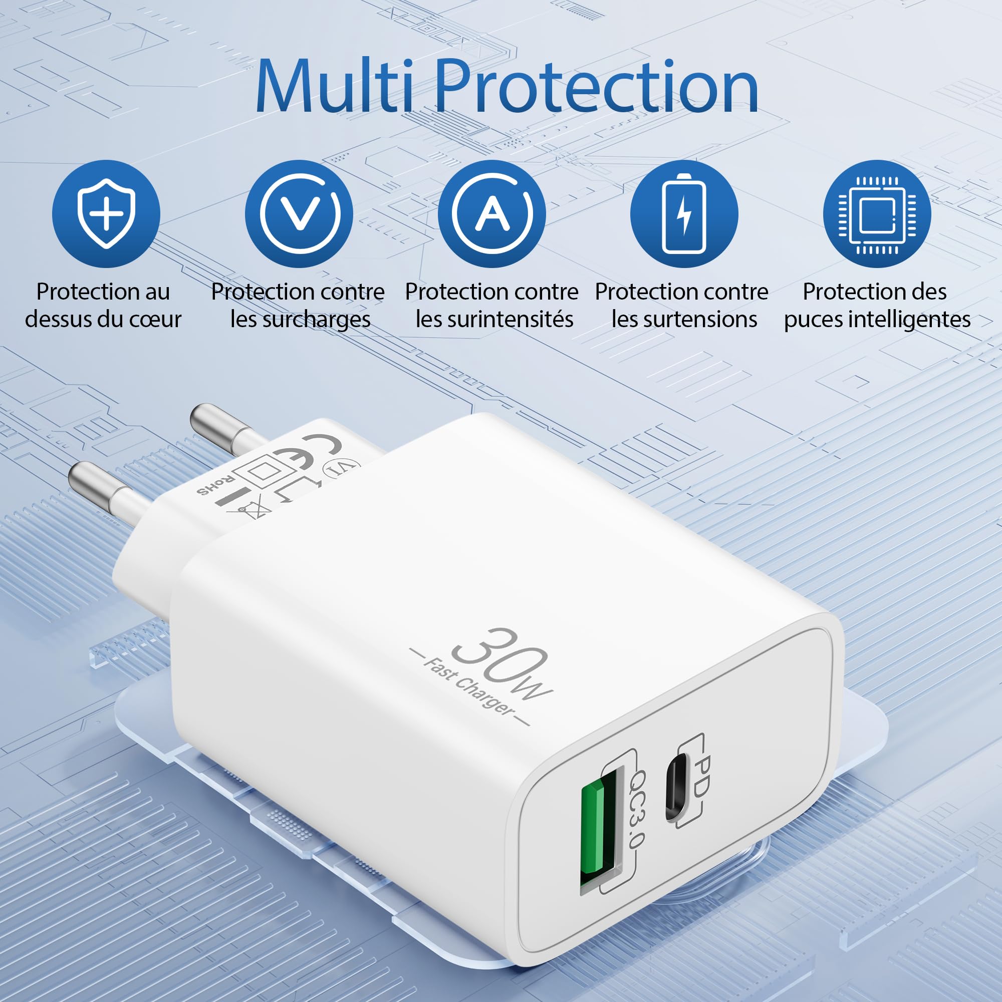 40W 2-Port Chargeur Rapide USB C pour iPhone 17/Air/16/16e/15 Chargeur Secteur Apple Compatible 40W Chargeur Rapide Pour IPhone 17 Pro Max 17 Air, IPhone 16 Câble USB-C 2 Mètres Inclus iPad 2025 11eme génération | Tablette Apple | Canada 【40W 2-Port Chargeur USB C】: Le 40W (PD30W + QC 10W) chargeur USB C avec câble de charge peut charger iphone 17/16 à 70% en seulement 30 minutes, tandis que le chargeur 20W à 55%, économise plus de 0,5 heure de temps de charge. Chargeur iPhone 15 Charge rapide - [Apple Fi Certified] Lot de 2 blocs de chargeur ural USB C... 【Ce Que Vous Recevrez】: 40W Prise USB C (USB-C 30W, USB-A 10W), 2M USB C câble. 【Grande Compatibilité】: USB prise avec PD 30W max USB C et 10W max QC sortie USB-A, profitez de la charge rapide pour iPhone 17 Air / iPhone 17 Pro Max / 17 Pro / 17, iPhone 16 / 16 Pro Max Plus, iPhone 16e, iPhone 15 / 15 Pro Max Plus, iPad 10ème génération, iPad 11ème génération A16., Apple iPad Mini 6e/7e, Apple iPad Air 4e/5e/11 (M2)/13 (M2), Apple iPad Pro 11Gen M4/4e/3e/2e/1e, iPad Pro 12., 9 Gen 3e/4e/5e/6e(2022), iPad Pro 13 (M4), iPad Pro 2018/2020/2021/2022/2024, iPad Air 2020/2024, iPad Mini 2021/2024., 【Chargement Simultanée de Plusieurs Ports】: Avec la possibilité d'utiliser simultanément les ports USB C et USB A, vous pouvez alimenter deux appareils en même temps sans compromettre la vitesse ou les performances.