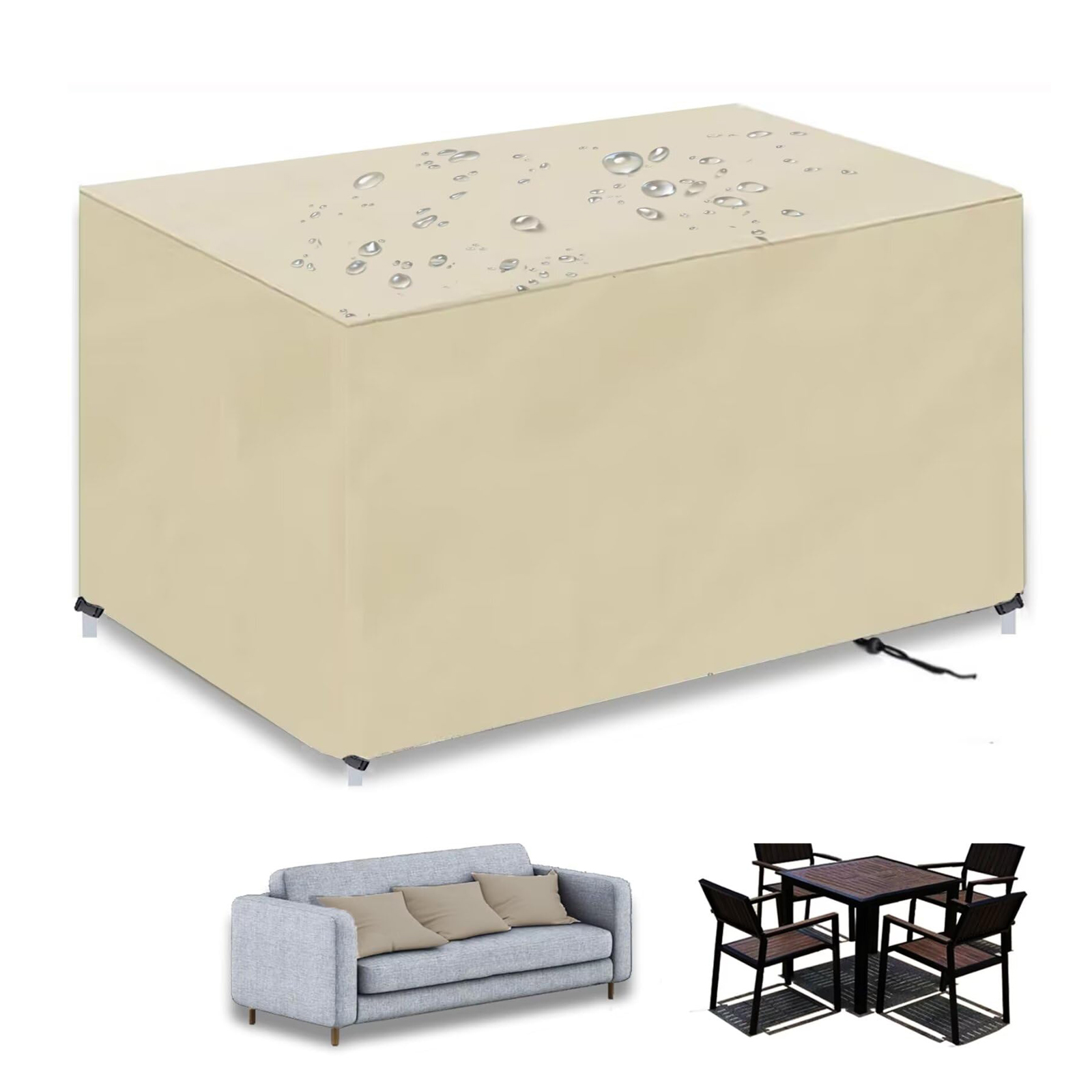 Housse Table De Jardin Housse Salon De Jardin Carré 170x170x85cm(67x67x33in) 420D Oxford Imperméable Bâche De Protection Housse De Meubles Table Extérieure Coupe-Vent Anti-UV Résistant Au Froid Housse De Meuble De Patio Bâche Oxford 420d 175x65x60cm Housse de protection pour meubles de jardin rectangulaires - Oxford... Housse de protection,Housses de meubles de jardin rectangulaires Oxford Housse Table de Jardin très bien Même dans des conditions environnementales difficiles, vos meubles de patio peuvent être sûrs, propres et secs Housse de protection,Housses de meubles de jardin rectangulaires Oxford... 【Large compatibilité】Multi-taille Housse Table de Jardin Non seulement pour les meubles d'intérieur / extérieur et un grand mobilier d'extérieur toute l'année, mais également idéal pour les meubles en rotin ou les meubles de jardin ovales, tels que des chaises, des bancs, une table basse, un ensemble de salle à manger, un ensemble de canapés, un ensemble de meubles en rotin etc 【Housse pour meubles de jardin 】 Housse salon de Jardin est faite de tissu Oxford 420D, Fabriqué en tissu oxford teint en fil sans décoloration avec revêtement en PVC, imperméable,résistant à la poussière et aux UV, Les bords à double couture sont et aux déchirures et, protection complète de vos meubles de patio extérieur, même lors de tempêtes de neige 【SystèMe De Fixation Coupe-vent Multi-Angles】Housse protection table jardin est doté d'un cordon de serrage et de 4 boucles, aident à fixer la housse sur votre meuble et avec une sécurité exceptionnelle dans conditions venteuses. Housse de protection pour meubles de jardin toutes saisons Housse table de jardin protégez votre table et vos chaises de terrasse de la pluie, de la saleté, de la poussière, des déjections d'oiseaux et de la neige par tous les temps.