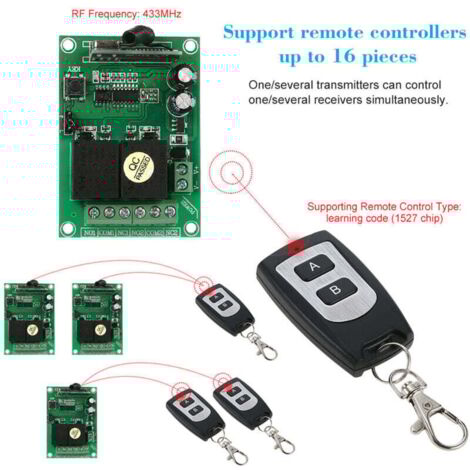 INSMA Commutateur RF Sans Fil Longue Portée 433 MHz DC 12 V 4 Canaux Commutateur De Telecommande Sans Fil Module Recepteur De Relais Dc 12 V Commutateur A Bascule Emetteur Relais Rf 2 Emetteurs Et Caractéristiques : * Nom du produit : interrupteur de télécommande., *Matériau : ABS. Télécommande Appairage Code 20 50m COMMUTATEUR TÉLÉCOMMANDE SANS Fil 433 MHz Module Récepteur Relais 1CH Interrupteur Lumière LED Sans Fil * Compact et efficace : ne pesant que 20 g et doté d'une capacité de charge de 3 A, ce récepteur compact est efficace dans la conception et la performance, fournit un fonctionnement fiable tout en économisant de l'espace dans votre configuration. Excellente conception] Commutateur de télécommande sans fil RF 433 MHz. Performances stables et fiables avec une sensibilité de réception élevée (> - 105 dBm). Un signal fort peut passer les murs, les sols, les portes. Il peut être contrôlé à moins de 50 mètres de distance sans obstacle. Vous pouvez contrôler à distance chaque machine connectée au récepteur relais via la... CEN Relais sans fil à distance 4CH 433 MHz Kit récepteur émetteur RF... P30-2 : 1 récepteur., 2 télécommandes. * Taille : comme indiqué sur l'image., Couleur : noir. Contrôle longue distance : profitez de la liberté de contrôler vos lumières jusqu'à 50 mètres de distance en utilisant la technologie RF sans fil efficace à une fréquence de 92 MHz. *Compatibilité polyvalente : conçu pour fonctionner avec une alimentation de 5 V, cet interrupteur est parfait pour contrôler les bandes lumineuses LED, les lampes de lecture et les ventilateurs, ce qui en fait un bon choix pour diverses applications. Contenu de l'emballage : P30-1 : 1 récepteur., 1 télécommande. Caractéristiques : * Installation facile : cet appareil dispose d'un connecteur USB mâle et femelle, permettant des connexions simples à votre alimentation et à votre appareil, simplifiant le processus d'installation sans avoir besoin de câblage compliqué.