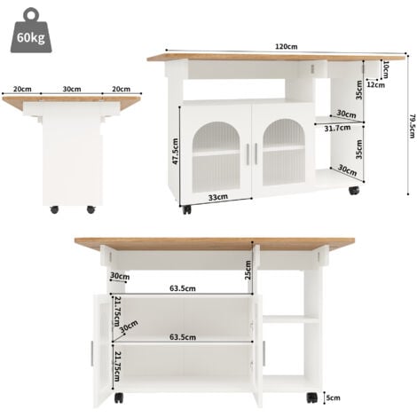 Design intemporel : Des lignes modernes aux subtils accents métalliques s'intègrent harmonieusement aux intérieurs contemporains. îlot Cuisine Multifonction Pliable Îlot De Cuisine (110*45-75*92cm), îlot De Cuisine Moderne, Meuble De Design Vintage Métal MDF Détails du produit Dimensions du produit : Dimensions hors tout (déplié) : 110 x 75 x 92 cm (L x l x H). Desserte Roulante Chariot de Cuisine Meuble de Rangement Buffet... Ses compartiments personnalisables et son plan de travail rabattable offrent une adaptabilité maximale, idéal pour les petits appartements. Qu'il s'agisse d'un rangement de cuisine, d'un buffet de salon ou d'une extension de table d'hôtes spontanée, ce meuble polyvalent allie fonctionnalité intelligente et ambiance élégante pour un style de vie sophistiqué. Îlot de cuisine avec chariot de service, buffet, chariot en bois (blanc... Les panneaux MDF de haute qualité, faciles d'entretien, les élégantes poignées métalliques et les gaufrages décoratifs témoignent d'un savoir-faire artisanal raffiné. Trois niveaux réglables en hauteur, des tiroirs pratiques et une étagère latérale permettent un rangement optimal des ustensiles de cuisine. Matériaux de haute qualité : Fabriqué en MDF durable avec une surface facile d'entretien, rehaussé d'élégantes poignées métalliques et d'une texture gaufrée élégante. Desserte Îlot de Cuisine Desserte à roulettes avec Étagère à épices et La fonction de pliage innovante transforme facilement le plateau de rangement en table à manger extensible. Construction robuste : Des charnières métalliques robustes et des panneaux renforcés garantissent stabilité et durabilité pour une utilisation quotidienne.