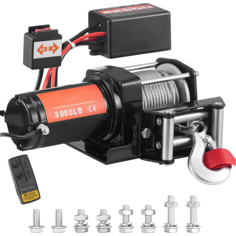 Force de traction nominale : 1300 kg. VEVOR Treuil Electrique 6123 kg 12 V CC Corde Synthetique 1,0 x 2438,4 Construction robuste : fabriqué en aluminium, cuivre, fer et acier allié avec un revêtement de peinture de haute qualité pour une résistance à la corrosion et à l'usure Treuil électrique 12V 1300kg SucceBuy 4500 Lb Treuil électrique, 12 V DC, Remorquage Treuil Atelier Levage Moteur : moteur en cuivre pur, 0,55 kW. Diamètre du trou de montage : 8,5 mm. Treuil électrique 12 V 907 kg Télécommande filaire Mothinessto LY8554... Haute sécurité : protection contre l'eau IP54, câble en acier stable et dispositif d'embrayage fiable garantissent un fonctionnement sûr et fluide - Toutes les pièces de montage nécessaires. Un treuil électrique à câble, de charge 1 tonne, comprenant : - moteur électrique, alimentation 230 volts, monophasé 50 hz, - treuil en châssis compact, avec... 1 poignée de commande. Contenu de la livraison : 1 treuil électrique. Moteur de levage puissant : le moteur en cuivre de 0,55 kW permet de soulever sans effort des charges lourdes jusqu'à 300 kg à une hauteur de 6 m Caractéristiques du produit : Matériau : aluminium, cuivre, fer, acier allié, câble en acier., Couleur : noir, jaune. Utilisation polyvalente : idéal pour une utilisation dans les véhicules tout-terrain, les opérations de sauvetage, les ateliers, les chantiers de construction et dans l'industrie