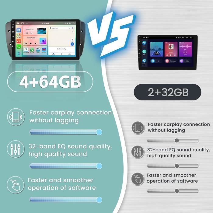 4 64G Android 13 Autoradio Carplay Pour Seat Ibiza Mk4 2009-2013 Sans... Concernant cet autoradio android [Navigation GPS et WiFi] L'autoradio android seat ibiza est doté de Go-ogle Maps préinstallé, vous permettant de visualiser les conditions de circulation en temps réel lorsqu'il est connecté au WiFi. Il prend en charge l'accès à des appareils externes tels que DAB+ et des enregistreurs de conduite, mais vous devez les acheter vous-même. Fonction d'écran partagé intégrée, vous pouvez ouvrir et utiliser deux applications en même temps. Système : Android 13 Mémoire : 4 Go (RAM) + 64 Go (ROM) Puissance de Sortie : 4*45W Mot-clé de réglage d'usine : 8317 [Caméra de Recul et Commande au Volant] Autoradio 2 din seat ibiza avec caméra de recul AHD, grand angle de 170 degrés, conception étanche. Autoradio GPS Séat IBIZA (2002 2008) - Carplay & Android ⇒ Acheter iOS et Android peuvent être connectés via WiFi. Radio FM/RDS Bluetooth Réglage de l'égaliseur Autoradio Carplay Android Auto Sans Fil Gps Wifi 4G&64G Podofo 9" Autoradio Bluetooth Pour Seat Ibiza 2009-2013 Carplay Android Auto Sans Fil,WiFi GPS Navi HiFi/RDS/FM DSP, 1280 * 720, Android 13 Radio 2 Din Avec Caméra De Recul AHD écran 9 Pouces CarPlay Android Auto Vous pouvez également télécharger et utiliser parfaitement les cartes en ligne de Goo-gle. Écran Partagé Commandes au Volant Entrée Caméra de Recul CarPlay et Android Auto Sans Fil Liaison Miroir Sans Fil L'écran tactile capacitif IPS de 9 pouces (1280x720) est super fluide. Avec Android 13, 8 cœurs, 4GB RAM et 64GB de stockage, il gère toutes les apps sans... Radio FM/RDS de haute qualité avec recherche automatique des canaux, fréquence 87,5-108 FM, peut prérégler 18 canaux que vous aimez. Écran tactile IPS haute définition de 9 pouces avec une résolution de 1280*720, le forfait comprend le cadre et les câbles, branchez et jouez, veuillez vérifier l'année et le modèle avant d'acheter. Nous fournissons un support technique après-vente 7*16 heures pour vous aider à résoudre les problèmes d'installation et d'utilisation. Avec paramètres d'égalisation personnalisables, vous pouvez régler la fréquence, l'égaliseur 32 bandes. [Android 13 Autoradio pour Seat Ibiza 2016-2017] Utilisation du système d'exploitation Android 13 et du système à 4 cœurs, 4 Go de RAM vous offrent une expérience plus fluide et 64 Go de ROM vous permettent de télécharger et de stocker davantage de votre contenu préféré. Vous pouvez utiliser les boutons du volant d'origine de la voiture pour contrôler l'autoradio, ce qui vous permet de changer rapidement les fonctions que vous souhaitez, ce qui est plus pratique et plus sûr.