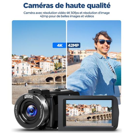 Capturez des détails nets de personnes et de paysages. L'écran pivote à 270°, un atout majeur pour les vlogueurs. Cette caméra vidéo est fournie avec une télécommande sans fil pratique pour démarrer/arrêter l'enregistrement et prendre des photos sans toucher l'appareil : idéale pour les créateurs indépendants, les vlogueurs et les photos de groupe. 🔍Zoom Numérique 18X : Le puissant zoom numérique 18x de ce caméscope 4K vous permet de capturer l'action au plus près. Caméscope Débutant Complet Caméscope 4K UHD 48MP 60FPS - Zoom 21x, Écran IPS 3 Rotatif 270° - Fonction Webcam/Micro - Carte 64Go + 2 Piles - Idéal Vlog/Youtube Camera Vlog 4k Ce caméscope filme même dans l'obscurité totale, pour une image plus claire. Conçu pour explorer le monde, ce caméscope est votre compagnon idéal ! EJ.life enregistreur à zoom numérique 18X Caméra vidéo 4K Caméscope 18X... Grâce à ses deux batteries haute capacité et sa carte micro SD de 32 Go, vous ne manquerez aucun moment précieux. 1 Photo et vidéo 2 Lecture Cadrez-vous facilement pour des plans individuels, filmez en plongée ou explorez des perspectives originales en contre-plongée. Caméscope 4K 48MP Zoom 18X Caméscope Vidéo 4K 48 Mp UHD WiFi Vision Nocturne IR Vlogging Caméra Pour YouTube Zoom Numérique 16x Avec Microphone, Stabilisateur Manuel, Capuchon D'objectif, Télécommande, 2 Batteries Caméscope Multifonction Batteries Incluses Caméra vidéo 4K - VBESTLIFE - Caméscope 56MP - Zoom numérique 18x... 💖Caméscope Multifonctionnel : Ce caméscope 4K regorge de fonctionnalités.