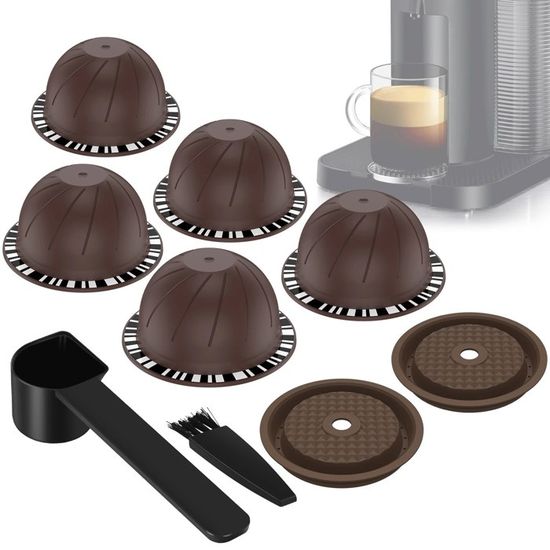 2 couvercles réutilisables pour capsules de café., 1 cuillère. Capsules Nespresso Vertuo Reutilisable Capsules Café écologiques 230ml Vertuo - Lot De 5 - Compatibles Machines Nespresso VertuoLine Capsules Café Réutilisables Capsules Vertuo Avec Couvercles Silicone Contenu de l'emballage : 5 dosettes de café Vertuo de 230 ml, 2 bouchons de capsules de café réutilisables, 1 cuillère et 1 brosse de nettoyage à longue queue. Pour vraiment atteindre la protection de l'environnement, l'économie et les économies. Vous pouvez les utiliser au bureau, en voyage et en camping. Remplir et presser le marc de café avec une cuillère est plus pratique et rapide. Capsules De Café Vertuo Rechargeables Disques Filtres Réutilisables Dosettes De Café Dimensions du couvercle de capsule de café réutilisable : 52 x 52 x 6,5 mm. 1 brosse de nettoyage à longue queue. Les dosettes de café et les capsules de café peuvent être réutilisées si elles sont correctement stockées., 4., Il est recommandé d'utiliser de la poudre de café de haute qualité pour le brassage. Nos capsules réutilisables Vertuo sont fabriquées en polypropylène de qualité alimentaire, elles ne contiennent pas de substances nocives et sont durables et faciles à nettoyer. Le nettoyage de la brosse à longue queue à double usage est plus pratique et efficace. Rechargeables et réutilisables] Les capsules Vertuo vides peuvent être lavées et remplies plusieurs fois, faciles à utiliser, à nettoyer et à recycler. Ajoutez votre marc de café préféré et profitez du processus d'infusion, économisant ainsi de l'argent et réduisant les déchets lors du remplissage et de la réutilisation des... LUKELI Vertuo Lot de 5 capsules réutilisables Vertuo rechargeables pour dosettes de café... Facile à utiliser et à nettoyer., Facile à utiliser., 1., Nettoyez et séchez la capsule de café., 2., Remplissez la capsule avec du café en poudre. Matériau : polypropylène et silicone de qualité alimentaire., Conseils : 1., Veuillez ne pas remplir., 2., Les capsules de café sont très chaudes après l'infusion, évitez de vous brûler, veuillez laisser refroidir avant de les retirer., 3., Rincez à l'eau, essuyez et rangez dans un endroit sec. Les dosettes réutilisables Vertuo s'adaptent parfaitement au bouchon de capsule de café réutilisable, ce qui facilite la préparation d'un café riche en crème, moelleux, lisse, délicieux et délicat. Compatible avec Delonghi ENV135, Delonghi ENV150, Vertuoline Plus et Vertualine GCA1., Respectueux de l'environnement, économique et économique.