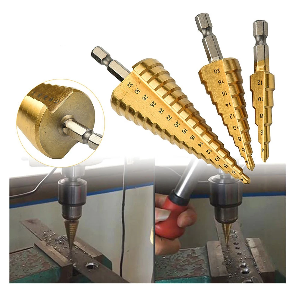 Perçage de trous propre et précis. Lot de 6 forets : comprend 3 forets étagés (un foret à 5 étapes de 4 mm à 12 mm, un foret à 9 étapes de 4 mm à 20 mm et un foret à 15 étapes de 4 mm à 32 mm), 3 forets hélicoïdaux (3 mm, 6 mm, 8 mm). Avec un étui en plastique pour garder les forets organisés lorsqu'ils ne sont pas utilisés Application]Parfait pour les réparations domestiques et les travaux légers tels que le perçage de trous dans le plastique, l'aluminium, le cuivre, la tôle de fer et beaucoup d'autres types de tôle (à l'exception de l'acier ou tout autre métal plus dur Foret Hss Hilti Knoweasy Kit De Forets étagés - 5 Forets étagés HSS Titane Avec Poinçon Foret étagé Hilti Foret A Etage Foret Étagé HSS 6-65mm OCGIG - Perçage Progressif Acier, Alu, Bois - Revêtu Titane Longueur Totale 12.5cm
