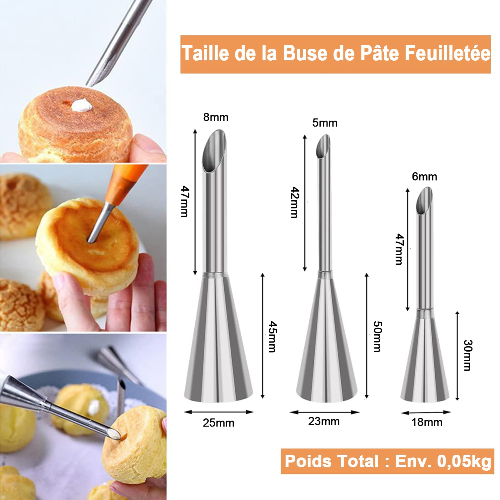 Lot de douilles en acier inoxydable, seringue de remplissage professionnelle pour confitures, crème et pâte feuilletée Que vous souhaitiez créer des décorations de gâteau DIY pour la maison, remplir de confiture de Berlin ou perfectionner des poches à vent avec de la crème, ce lot de 5 douilles à douille en acier inoxydable est votre assistant universel pour une cuisson précise Technologie clé : Conception sans soudure : fabriquée au laser, sans couture et anti-rayures pour un nettoyage hygiénique. La quantité et la taille sont suffisantes pour répondre à vos besoins quotidiens. Appuyez uniformément pour injecter du remplissage dans des beignets, de la pâte feuilletée ou du pain. Idée cadeau : élégante finition argentée, parfaite pour Noël ou la fête des mères. La surface est lisse et sans couture. Cela vous permet de choisir la bonne buse en fonction des besoins personnels lors de la décoration de gâteaux. Lot 5 Buses Poche à Douille Lot De 4 Douilles De Remplissage, Longues Douilles à Douille, 5 Mm Et 6 Mm, Seringue En Acier Inoxydable, Seringue à Beignets Pour Confiture, Douille De Remplissage Pour Pâtisserie, Cupcakes, Puffs Douilles Acier Inox Poche à Douille Lot de 4 douilles de remplissage, longues douilles à douille, 5 mm Caractéristiques : Matériau : acier inoxydable 304., Poids par lot : 46 g., Couleur : argenté. Professionnels : les longues douilles antirouille permettent de remplir efficacement les beignets, les pâtisseries et plus encore. La seringue à crème n'est pas différente de celle d'une buse normale. Donc voici les deux astuce de la plus simple, un, la plus technique et sinon n'oubliez pas de vous abonner pour plus d'astuces et surtout pour... Séchez soigneusement les bouchons à beignets et rangez-les au sec. Nombreuses utilisations : la longue buse est adaptée pour décorer des gâteaux, des bouffées, des pâtisseries, des cupcakes, des beignets et d'autres pâtisseries qui ont besoin de crème. Sous l'influence de la pression interne, la crème peut être pressée uniformément sur la surface de la boulangerie et garantir des résultats parfaits. Bienvenue dans notre petite boutiqueKit de qualité supérieure : vous recevrez 5 remplisseurs de crème de différentes tailles et une brosse de nettoyage à... Il est facile à utiliser et vous n'avez pas à vous soucier de la fatigue de la main et du poignet. La seringue à pâtisserie est un outil idéal pour les débutants et les amateurs de desserts. Pour les décorations : variez la pression pour les fleurs, les spirales ou les inscriptions., 3., Nettoyage et stockage : retirez les restes avec la brosse fournie ou au lave-vaisselle.