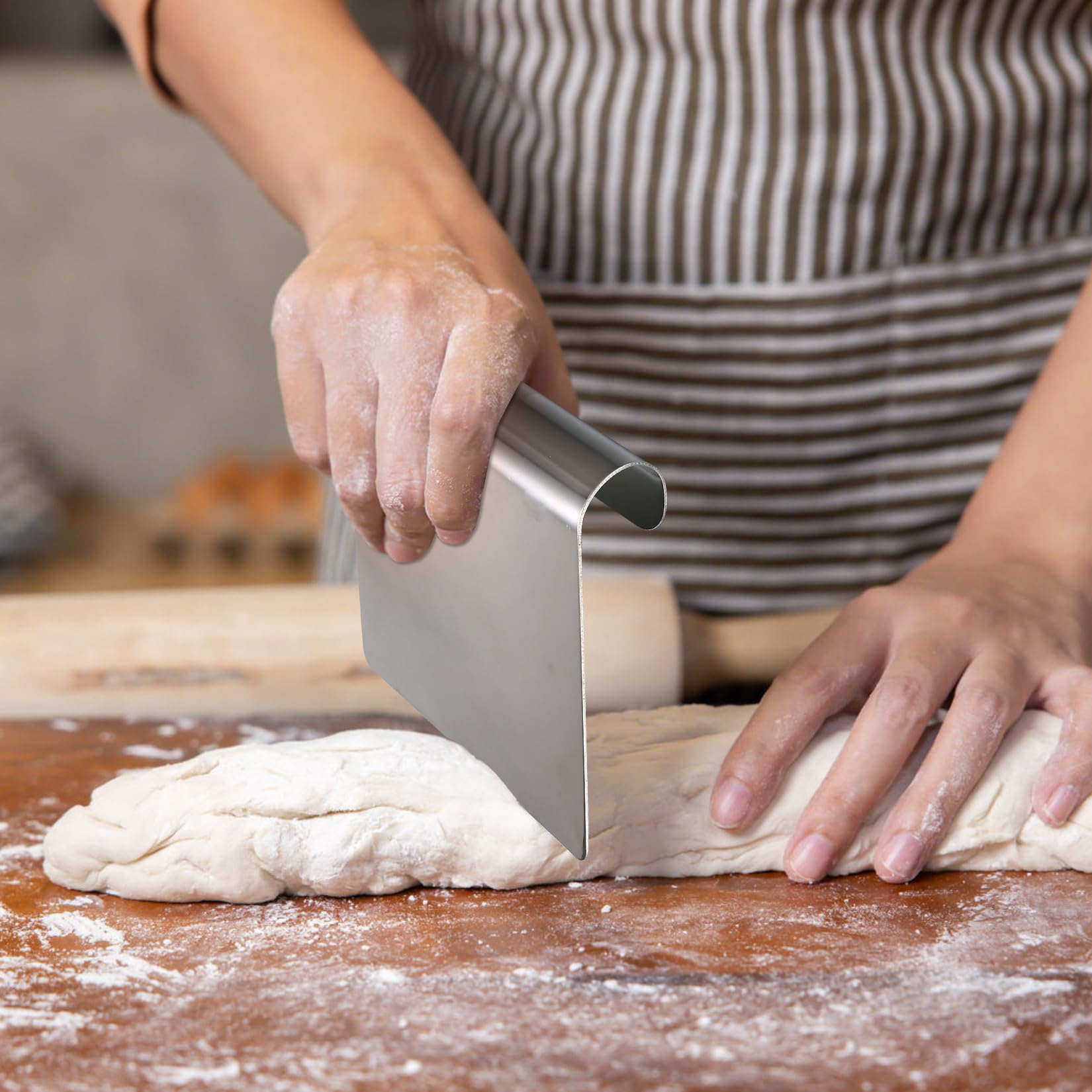 Coupe-pâte en acier inoxydable Matfer Raclette-coupe-pate,Spatule en Silicone,résistante à la chaleur... Spatule Racleuse Pâte Légumes 5 Pièces Corne Patisserie Acier Inoxydable 304 Coupe Pate Boulangerie Corne Pâtisserie Ergonomique Matériaux haut de gamme : Ce hachoir à Ramasse Légumes Cuisine est fabriqué en acier inoxydable poli miroir, un matériau durable et doté d'une surface lisse. Design Ergonomique: La spatule à pâte possède une poignée courbée ergonomiquement conçue, confortable à tenir et facile à utiliser, rendant votre processus de découpe et d'utilisation plus confortable, fluide et sans effort. Matériaux haut de gamme : Ce hachoir à Ramasse Légumes Cuisine est fabriqué en acier inoxydable poli miroir, un matériau durable et doté d'une surface lisse. Sa... Sa construction robuste empêche toute flexion, ce qui en fait un outil fiable pour les cuisines professionnelles et les repas quotidiens à la maison. Nettoyage facile : Sa surface lisse et miroir est soigneusement conçue pour un nettoyage facile ; un simple rinçage à l'eau courante suffit. Que ce soit pour préparer des pâtisseries aux amandes, façonner des roulés à la gelée, portionner des salades ou couper des pizzas et des biscuits, cet outil s'intègre parfaitement à votre routine culinaire. Utilisations polyvalentes : Parfait pour couper la pâte, étaler la crème ou diviser les couches de gâteau.