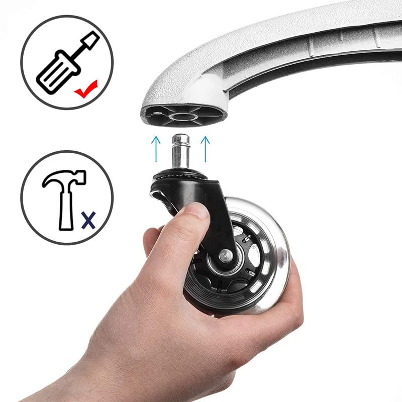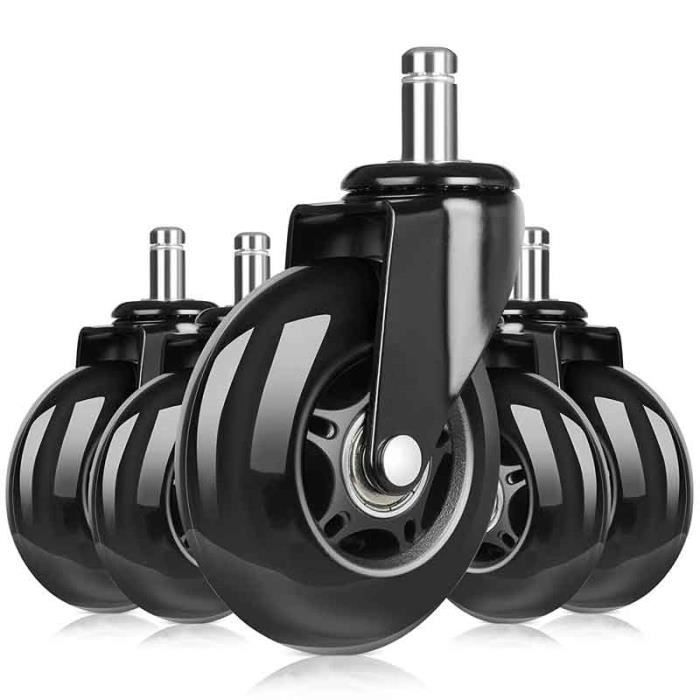 Roulettes de remplacement pour chaise de bureau universelle, ensemble de 5 Les roulettes pour chaises de bureau peuvent supporter des charges allant jusqu'à 295 kg ! Roues Remplacement 11x22mm Lot De 5 Roulettes Pour Chaise De Bureau - 11 Mm/22 Mm Roulements à Billes Chaise Bureau Nos roulettes résistantes pour chaises de bureau sont fabriquées en acier industriel, en roulements à billes de précision et en polyuréthane durable. Fabriquées en polyuréthane de qualité supérieure, elles sont résistantes, légères et peuvent supporter une charge allant jusqu'à 450 kg. Grâce à leur conception à roulettes doubles, elles assurent une glisse silencieuse et fluide, améliorant ainsi la stabilité et la maniabilité de votre chaise Lot de 5 roulettes de chaise de bureau avec roulettes en TPR double roue universelle de rechange... 【 SUPPORT JUSQU'À 295KG 】 Rassurez-vous, nos roulettes pour chaises de bureau sont compatibles avec presque toutes les chaises de bureau (veuillez vérifier la taille de votre tige avant de commander). Profitez d'un glissement sans souci et en toute sécurité sur les sols en bois, en bois dur, en stratifié, en vinyle, en carrelage et en moquette tout au long de la journée avec les roulettes pour chaise de bureau. IMPORTANT : NON compatible avec les chaises 1KEA ». Avant d'acheter, veuillez mesurer et confirmer la taille des roulettes pour sols durs qui convient à votre chaise. 【 REMPLACEMENT POUR LA PLUPART DES CHAISES DE BUREAU 】 Deux roulements précis et une coque de roue en polyuréthane souple permettent de rouler rapidement et silencieusement sur tous les sols, sans aucun bruit. 【 IMPORTANT 】 La taille de la tige des roulettes pour chaises de bureau a un diamètre de 11 mm x 22 mm et ne convient pas à la plupart des chaises 1KEA et à certaines chaises de marque.