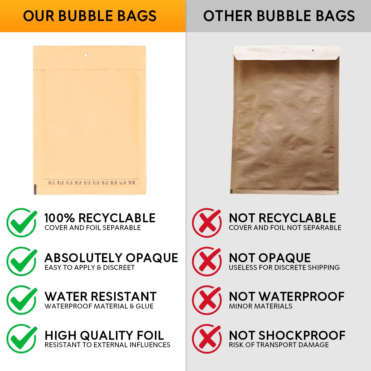 Enveloppes à bulles - Enveloppes postales - La Poste Pro Bords soudés extra solides Les bords de la enveloppe à bulles sont solidement soudés et évitent d'endommager les marchandises transportées, même en cas de traitement rugueux. Enveloppe A Bulles En Plastique 50 Enveloppes à Bulles Blanche PRO B-2 120 X 215 Mm (dimension Pochette Enveloppe Air Kraft 17x22,5 Cm Qualité de la marque VERPACKING Film de qualité supérieure de 50 microns Nos enveloppes à bulles protègent votre marchandise de manière fiable grâce au film de qualité supérieure de 50 microns. 50 enveloppes bulles 17 cm x 22,5 cm (format A5) blanc Pochette à bulles d'air, Pochette d'expédition, Enveloppes à bulles d'air L'enveloppe bulle C3 blanche de dimensions intérieures 15 x 21,5 cm et extérieures 17 x 22,5 cm est l'accessoire idéal pour l'envoi sûr et protégé de vos articles fragiles. Économisez du temps et de l'argent tout en assurant une protection maximale à vos... 50 Enveloppes à Bulles blanche PRO B-2 120 x 215 mm (dimension pochette... dimensions intérieures : 15 x 21,5 cm (format A5) Papier kraft résistant Les enveloppes à bulles sont fabriquées en papier kraft de haute qualité. dimensions extérieures : 17 x 22,5 cm Fabriqué en papier kraft enduit robuste avec film PE de qualité supérieure de 50 microns, taille optimisée pour les fournisseurs de services d'expédition, sans frais de port grâce à un matériau léger Ils sont donc produits de manière durable et le matériau est particulièrement résistant aux déchirures., écologique : 100 % recyclable Ainsi, les marchandises expédiées arrivent intactes auprès du client - et cela avec une rentabilité optimisée pour l'expédition.