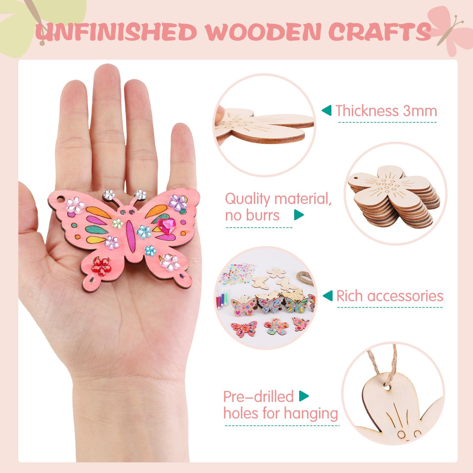Latocos 4 Pièce Maison D'oiseau Bricolage Kit Loisir Creatif Activité Peindre des moutons au bouchon de liège {Activité} - Maman Sur Le Fil Artisanat Scolaire Maternelle GuobinZH 50 Pièces DIY Papillons Bois à Peindre Activité Kit Bricolage Enfant Papillon en bois Utilisation Breoter : Les kits de bricolage d'anniversaire pour enfants sont largement utilisés dans Pâques, mariage, Noël, fêtes d'anniversaire, activités de bricolage, classes d'artisanat scolaire, fêtes d'amis et autres scènes, très 4 5 6 ans et utilisés ci-dessus. Peinture DIY: Les papillons en bois non peints peuvent être peints, colorés, sculptés, collés et écrits au recto et au verso. Abri à papillons en bois à peindre DIY - Kit complet abri papillons... DIY Loisirs Créatifs pour Enfants: Le kit activité manuelle contient 50 papillons en bois non peints(5 tailles et formes différentes), 12 crayons aquarelle, 4 feuilles d'autocollants pour pierres précieuses et 50 de la ficelle. Vous pouvez décorer les papillons en bois avec des crayons aquarelle et des autocollants en pierre précieuse pour ajouter des détails et de la brillance aux papillons et les rendre vivants et colorés. Largement répandu: Le kit de bricolage papillon peut être utilisé pour Halloween, Thanksgiving, Noël, anniversaire, activités de fête, récompenses de classe, décorations de fête, cours d'artisanat et ainsi de suite. Kit de bricolage en bois DIY: Ce kit de bricolage pour enfants permet d'entraîner la coordination œil-main, l'attention et la capacité de réflexion de votre enfant et de stimuler sa créativité.