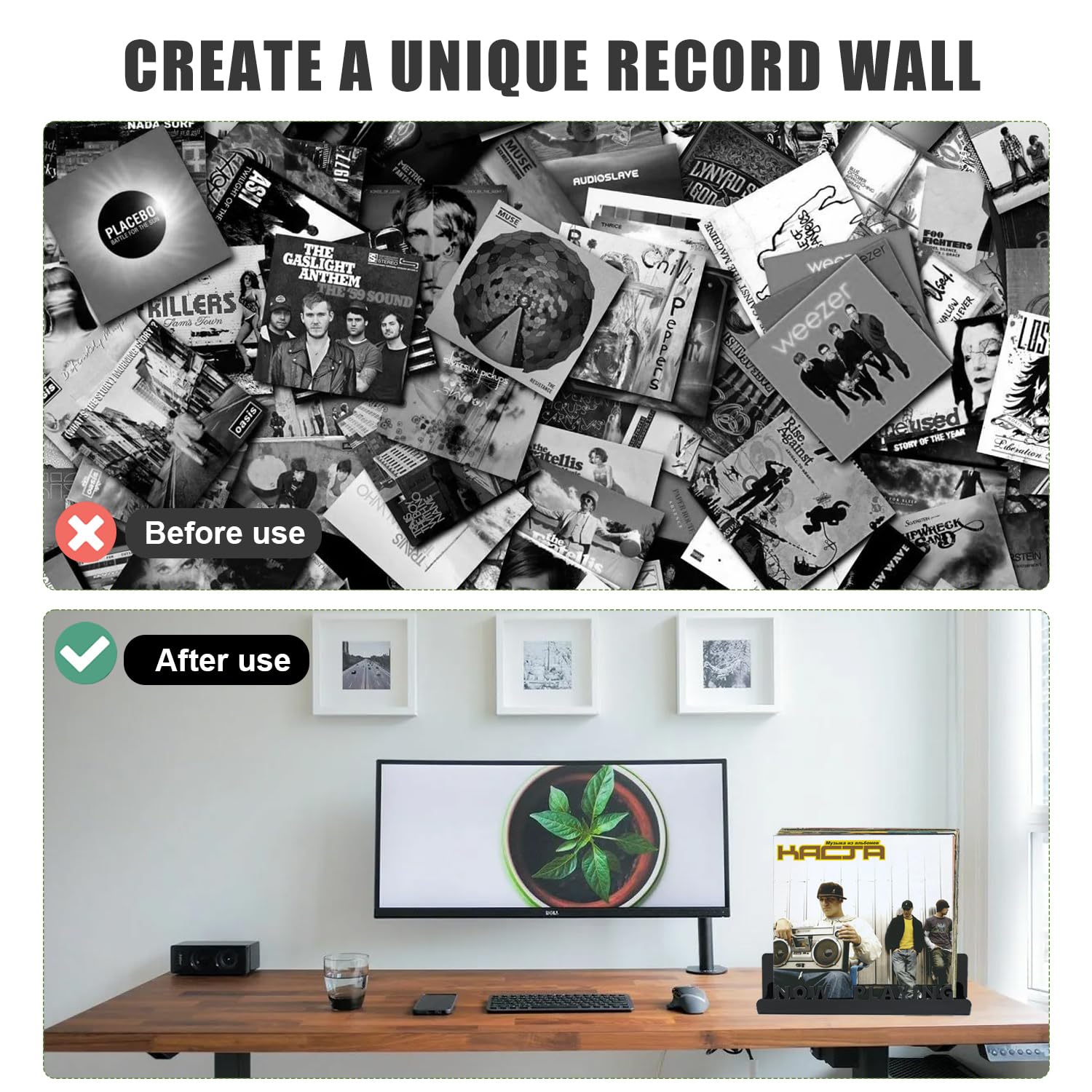 Exposez fièrement votre collection de disques vinyles, transformant vos vinyles poussiéreux en une exposition stylée à côté de votre jukebox ou de votre chaîne stéréo. Installez ce porte vinyle mural en quelques minutes et profitez d'un moyen sans tracas d'exposer vos albums préférés. Son design moderne améliore la décoration intérieure tout en affichant magnifiquement les pochettes d'albums, faisant d'elle une solution de rangement disque vinyle polyvalente. Matériau Durable : Fabriqué en acrylique de haute qualité, notre étagère vinyle murale est robuste et décorative. Noahrk Support mural pour disques vinyles Now Playing - Now Spinning Installation Facile : Le support mural vinyle comprend des vis, des tubes d'expansion et du ruban adhésif double face pour un montage rapide. Nos boîtes d'exposition s'adaptent à la plupart des décors de maison et de bureau, y compris les styles modernes, robustes et minimalistes. Bopfimer Now Playing Présentoir en acrylique pour disques vinyles LP... Utilisez-le dans n'importe quelle pièce de votre maison et offrez l'organisation et l'élégance à tout collectionneur de disques vinyles. Un Cadeau Bien Pensé Cadeau idéal pour les amateurs de vinyles, notre porte-disques allie fonctionnalité et style. Applications Variées & Design Moderne : Cette étagère vinyle s'intègre parfaitement dans n'importe quel espace : chambres, salons ou magasins de disques. Rangement Disque Vinyle Mural Etterr | Rangement Vinyle | Pour 50 Vinyles | 100% Acier | Fabriqué En Europe | Range Vinyle étagère Acrylique Exposition Disques Collection Les meilleures caisses de rangement pour vinyle - Rangement vinyle Cadeau Réfléchi : Un cadeau parfait pour les passionnés de vinyles, notre porte vinyle combine fonctionnalité et style.