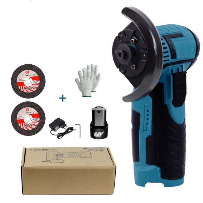 Mini Disqueuse Sans Fil 500W 12V Mini Meuleuse D'angle Sans Fil Polisseuse Avec 2 Batteries 5pc Lame A Lamelles Et 15pc Disques De Poncage 74563689 Outil Sans Fil Bricolage Elle fonctionne sur batterie 21V (deux batteries 1500mAh sont incluses), donc plus de fil qui traîne pour travailler n'importe où. Le diamètre des disques est de 125 mm, parfait pour couper du métal, de la pierre, des carreaux ou du béton, mais aussi pour meuler, ébavurer et polir 1 jeu de prise ue - ZK40-Meuleuse d'angle sans balais d'origine, Mini polisseuse sans fil Sécurité et durabilité : Le déflecteur épais empêche efficacement les projections de débris dans la machine, améliorant ainsi la sécurité de fonctionnement et la durée de vie. Promo Polisseuse De Rénovation Sans Fil, Sans Batterie Ni Chargeur... Autonomie longue durée : Équipée de 2 batteries rechargeables de 2 000 mAh, elle offre une autonomie continue extrêmement longue. Mini meuleuse d'angle électrique portative : avec une vitesse élevée allant jusqu'à 19 500 tr/min, elle offre une vitesse d'enlèvement rapide des matériaux, économisant votre temps et votre énergie, garantissant un travail fiable et efficace. La poignée ergonomique est pratique pour une utilisation à une main, et l'interrupteur latéral est facile à saisir et à utiliser. Batterie : 2 batteries rechargeables 2000 mAh (livrées avec la batterie correspondante) Diamètre de la lame : 76 x 10 mm (diamètre extérieur x diamètre intérieur) Vitesse : 19 500 tr/min 1 meuleuse d'angle2 batteries1 meule3 disques de meulage pour métaux1 disque à tronçonner pour pierre1 disque à tronçonner pour bois1 manuel d'utilisation2 gants1 clé Allen1 chargeur