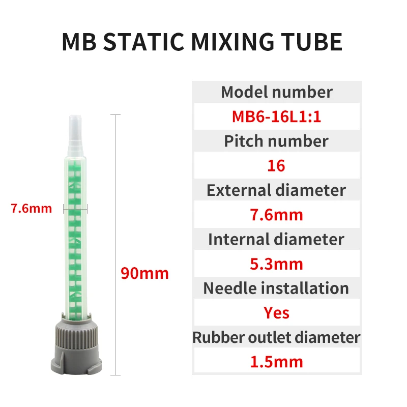 Tube Mélangeur Plastique 83mm 50pcs 83mm Résine AB Colle Mélangeur Statique Tubes De Mélange Kit De Buse De Mélange Pour Mélangeur De Liquide à Deux Composants Tube Mélangeur Baïonnette Carrée Art En Résine époxy Rendu En 3d Ab Colle Colle Cristal Colle Escaliers Style Riviere Escaliers Boises 1066261 26857 50ml Manuel AB Époxy Résine Mélange Applicateur Distributeur Pistolet... Peut être appliqué dans n'importe quelle machine de mélange liquide à deux composants, tant que la conception de l'interface est appropriée. Diamètre intérieur : 5,3 mm. Diamètre extérieur : 7,6 mm., Diamètre : 9 mm. Caractéristiques : Peut se connecter à l'aiguille. Compatibilité : cette interface légère à baïonnette carrée est compatible avec n'importe quelle machine de mélange liquide à deux composants, tant que l'interface est adaptée, ce qui la rend polyvalente et flexible à utiliser. Design optimal : le tube de mélange à 16 buses statiques en résine AB verte F6-16 de 83 mm est spécialement conçu pour les séries AB MA de 50 ml et 37 ml, un ajustement parfait et une utilisation efficace. Fabriqué en matériau plastique, le tube de mélange à 16 buses F6-16 Green AB en résine statique de 83 mm offre durabilité et performance durable. Super AB colle 302 forte Cyanoacrylate liquide rés... – Grandado
