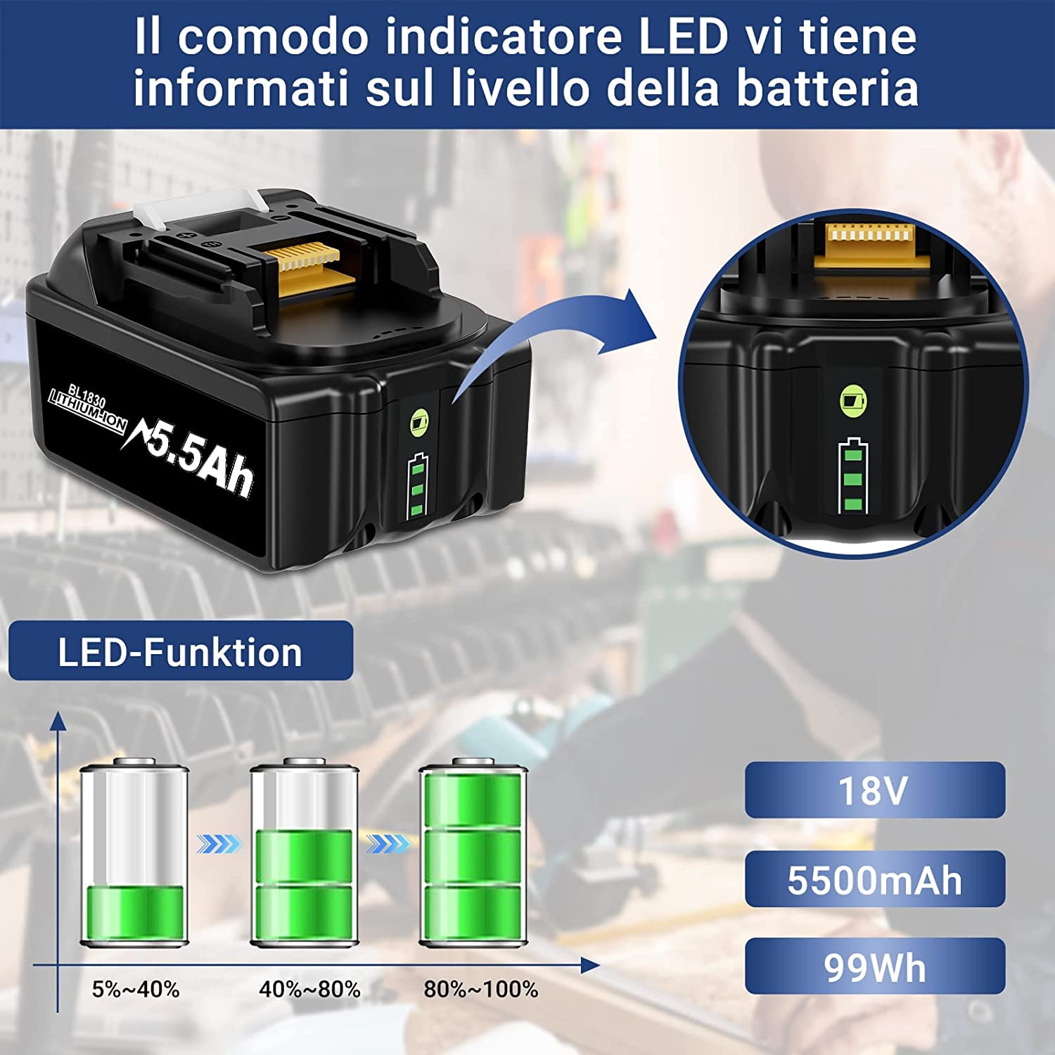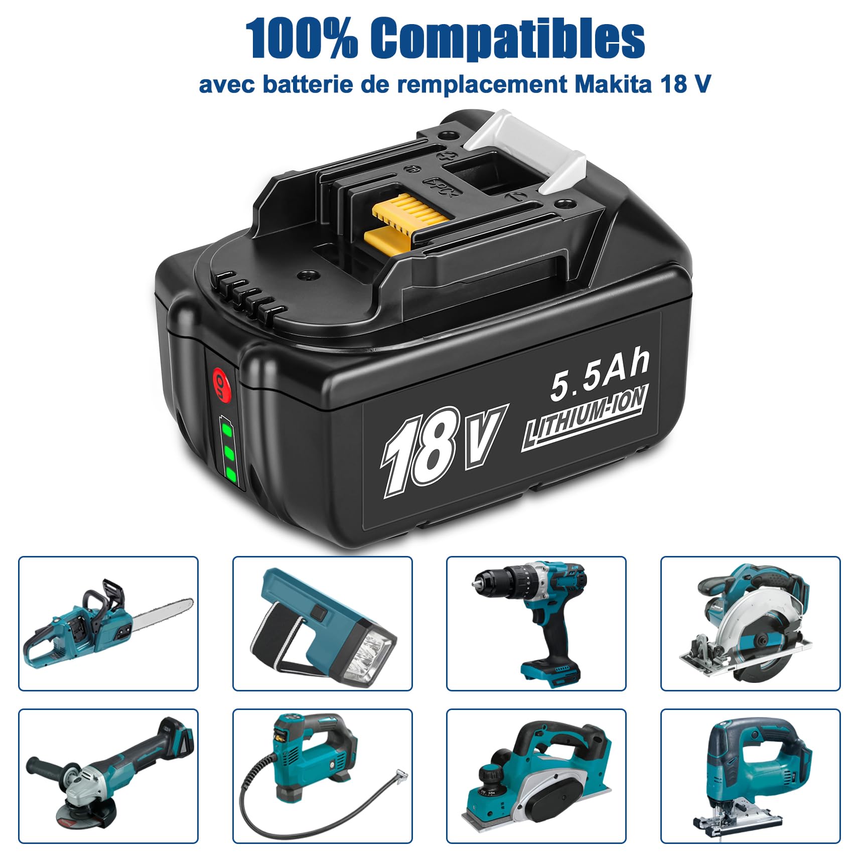 Batterie Makita 4 PCS 5.5Ah/5500 MAh Batteries De Rechange Pour Makita 18V Li Rechange économique Ajustement parfait : conçu de manière professionnelle pour les batteries et chargeurs d'origine. Les batteries sont compatibles avec vos outils 18 V et peuvent être complètement chargées rapidement BATTOOL 2Pack BL1860B 5.5Ah Remplacement pour Makita 18V Batterie En outre, il est équipé de différentes fonctions de protection pour assurer une utilisation sûre et une plus longue durée de vie de la batterie. Batterie de Rechange pour Makita 18V avec Chargeur DC18RC Compatible avec BL1860 BL1860B BL1850 BL1850B BL1840 BL1830 BL1820 LXT400 DC18RA DC18RC (2X 5.5Ah... Assurance qualité : cette batterie utilise une technologie et des matériaux avancés pour offrir d'excellentes performances et stabilité. Entièrement compatible : cette batterie pour makita 18 V est compatible avec BL1860, BL1860B, BL1850, BL1850B, BL1840, BL1840B, BL1830B, BL1815, BL1825, BL1835, BL1845, LXT400, 194205-3, 194 309-1 Cette batterie est idéale si vous avez besoin d'alimenter plusieurs appareils. Batterie de rechange compatible avec BL1860B BL1860 BL1850B BL1850 BL1840B BL1840 BL1830B BL1830 BL1820 BL1815 194205-3 194309-1 194204-5 1 Référence : 96639., 9 0196673-6 LXT-400