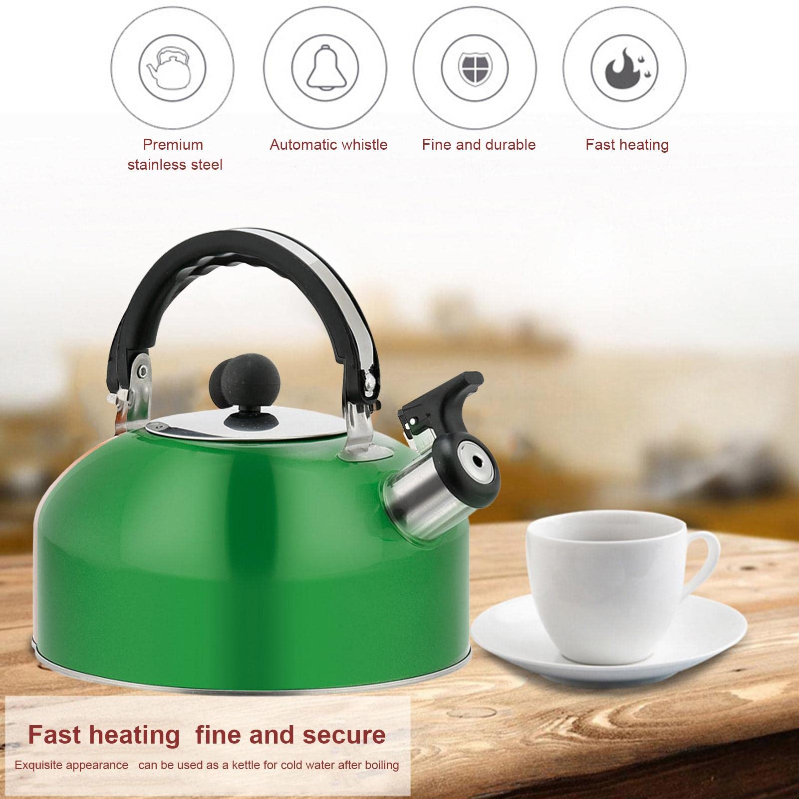 Il est également ergonomique et confortable à saisir. Bouilloire Sifflante Portable Bouilloire Sifflante, 2.5L Bouilloire Sifflante, Induction Gaz Bouilloire En Acier Inoxydable Bouilloire 92364760 Théière Vintage Design Pratique Descriptif & Caractéristiques :Cette bouilloire à sifflet en acier inoxydable est utile pour vous aider à faire l'eau facilement, ce qui vous apportera une grancommodité., 1., Fabriqué à partir d'un matériau en acier inoxydable, extrêmement et stable., 2., Conçu avec une poignée isolée thermiquement enduite silicone, est ergonomique et confortable à porter., 3., La poignée pliable et l'aspect compact vous permettent le transporter et le ranger facilement. Couleur. Vert Clair · Matériau. Acier inoxydable · Marque. Luckxing · Capacité. 1800 Millilitres · Peut passer au lave-vaisselle. Oui · UPC. 790197715855 Vous pouvez le mettre sur une cuisinière, une cuisinière à induction, une cuisinière à poterie électrique, une cuisinière halogène ou une cuisinière pour faire bouillir de l'eau. 【 Facilement portable 】 Cette théière à eau en acier inoxydable est de taille compacte et pliable dans la conception de la poignée, ce qui est très facile à transporter et à ranger pour vous. Bouilloire Sifflante en Acier Inoxydable, Induction Gaz Théières pour Cuisinière, Faciles a Nettoyer Pour Cuisine, Camping, Pique-nique (Vert,5.0L) · 3.0L... 【Applications étendues】 La gamme d'applications de cette bouilloire est très large. Caractéristiques:Nom : bouilloire sifflante en acier inoxydable. Vous n'avez donc pas à vous soucier d'oublier d'éteindre le feu. Bouilloire Sifflante en Acier Inoxydable 3,5l Théière Électrique pour Camping Matériel: acier inoxydableTaille: 18,5x19cm / 7,28x7,5 poucesCapacité totale : 1,8 LListe colisage:1 bouilloire sifflante en acier inoxydable. Il peut également raccourcir le temps d'ébullition.