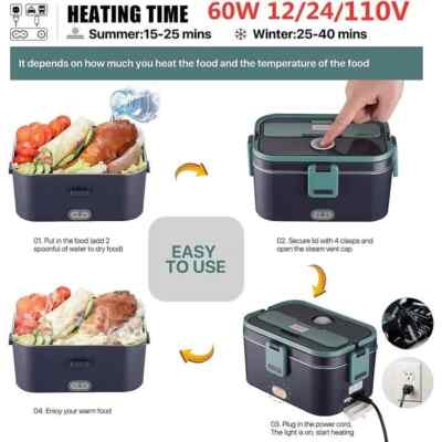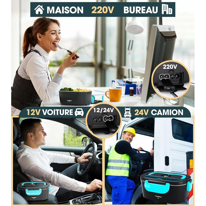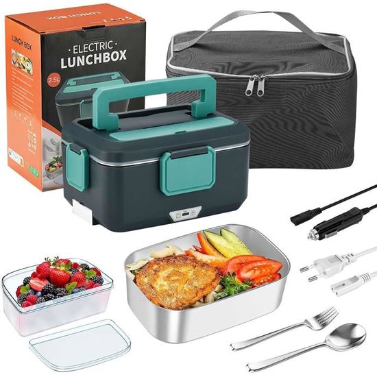 Il offre une solution saine et pratique pour vos repas. Chauffage rapide et contrôle de la température : Notre boîte à lunch électrique utilise une technologie de chauffage avancée pour réchauffer uniformément les aliments en 15 à 30 minutes, idéale pour les personnes actives. Elle est dotée d'un thermostat réglable (65 °C à 90 °C) pour préserver efficacement les nutriments et maintenir votre repas au chaud plus longtemps. Cette... 【Conception étanche】 Le couvercle est muni de quatre clips robustes et d'un joint intégré pour éviter les fuites et conserver les aliments intacts. Cette boîte à lunch électrique permet de servir les repas quotidiens et d'apporter une chaleur réconfortante au bureau ou en voyage. Réchaud Repas Acier Inox Nulmvic Gamelle Chauffante Électrique 75W: 1,5L Lunch Box Chauffante Électrique 12V/ 24V/ 220V Boîte Chauffante Repas 304 Acier Inoxydable Pour Voiture Camion Bureau Travail (Bleu Boite Chauffante Repas La technologie de thermostat PTC utilisée pour le chauffage initial empêche la surchauffe, garantissant ainsi une efficacité énergétique, une répartition uniforme de la température et des aliments plus tendres. Liste des produits : boîte à lunch, adaptateur, câble de chargeur pour voiture, couverts, récipient à fruits, sac isotherme, manuel d'instructions Courant : 50-60 Hz Capacité : 2,5 L Poids : 1,4 kg Dimensions de l'emballage : 190 × 140 × 265 mm Dimensions du carton extérieur : 445 × 405 × 555 mm Matériau de la coque extérieure : PP Matériau de la doublure intérieure : acier inoxydable 304 【Chauffage rapide 90 W】Le bol à chauffage rapide 90 W offre deux fonctions : chauffer et maintenir au chaud. Il permet non seulement de conserver les repas préparés au réfrigérateur, mais est également livré avec un sac isotherme de haute qualité. 【Nettoyage facile】 Il dispose de deux compartiments séparés pour séparer le riz et les légumes, ce qui permet de répondre à divers besoins alimentaires. La poignée assure une portabilité pratique. 【12/24/220 V】Double tension 220 V-12 V/24 V pour une utilisation à la maison et en voiture. Grande capacité de 2,5 L]Fabriqué en plastique PP de qualité alimentaire d'une capacité de 2,5 L, le récipient intérieur est en acier inoxydable 304... L'ensemble comprend des couverts en acier inoxydable (cuillère et fourchette), un sac de transport pour éviter des frais supplémentaires et un compartiment en plastique pour les fruits ou les collations (non chauffé). Le récipient intérieur amovible est étanche et facile à nettoyer. Lunch Box Chauffante 2,5L Ultra Grande Capacité 90W, Boîte à