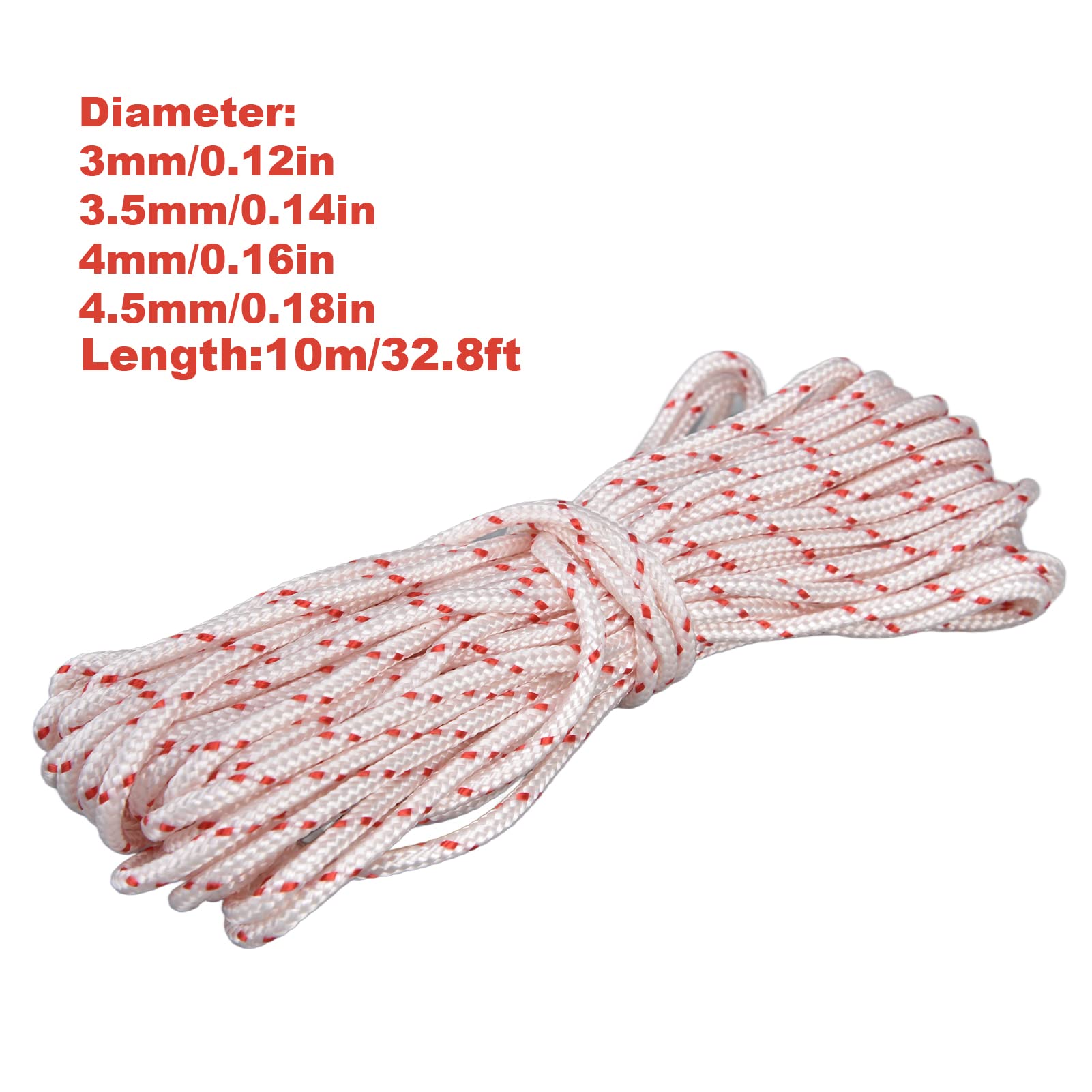 Corde de démarrage à traction - OMABETA - 10m Nylon - Résistance à l'usure - Applications Cordon de traction de rechange pour tondeuse à gazon et tronçonneuse, 300 cm x 4 mm, en nylon pour corde de recul - Ligne de démarrage résistante à l'huile... Cordon Remplacement Tondeuse Tronçonneuse Mothinessto Corde De Démarrage En Nylon 3,5MM, Résistant à L'usure Pour Tronçonneuse De Jardin Corde Démarrage Tronçonneuse Couleur : conforme à l'image., *Longueur : environ 300 cm. Remarque : la couleur réelle de l'article peut être légèrement différente de celle des photos présentées sur le site en raison de nombreux facteurs tels que la luminosité de votre écran et la luminosité de la lumière. Corde de déarrage en nylon 5,0 10 pour tondeuse Husqvarna Echo... *Diamètre : environ 4 mm. Corde de démarrage en nylon : 300 cm x 4 mm compatible avec la plupart des tondeuses à gazon et tronçonneuses offrant une performance de démarrage fiable pour les outils électriques en plein air Solution de remplacement facile : mise à niveau simple à faire soi-même pour les cordes de démarrage âgées ou cassées avec des extrémités nettes qui facilitent le nouage rapide et une fixation sûre Mécanisme de performance amélioré : conçu avec des fibres de nylon étroites qui évitent l'effilochage et résistent à l'étirement, offrant une action de recul fiable sur une utilisation prolongée