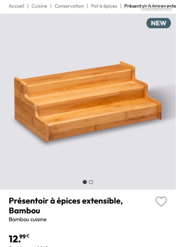 Étagère de rangement de Cuisine à 2 couches - Étagère debout 2 niveaux - Étagère de Étagère À Épices Extensible À 3 Niveaux En Bambou - Pour Épices, Épices... Organisation épices Bouteilles 5five - Rack Extensible épices Bambou Etagere Placard Cette étagère à épices en bambou a un design intéressant et moderne. Il sera une belle décoration d'intérieur dans toutes les cuisines. Le bambou est un matériau durable et résistant. L'étagère à épices contient de nombreux types d'épices et d'herbes Matière de la structure: Bambou Dimensions : L., 30 x P., 7 x H., 27., 5 cmPoids : 0,52 kgMatière de la structure : BambouMatière des éléments : AcryliqueNombre d'étagères : 2, Dimensions = L., 30 x P., 7 x H., 27., 5 cm | Poids = 0., 517 kg |
