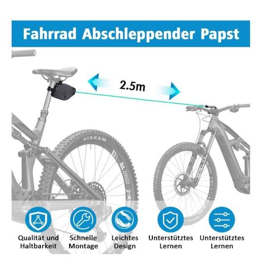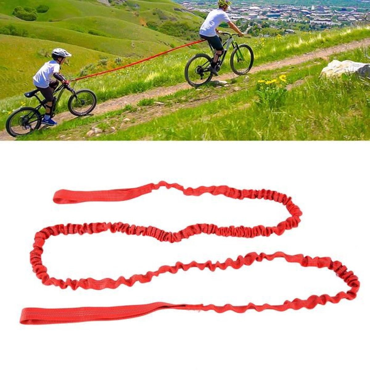 VTT corde de remorquage corde de remorquage en plein air enfants adulte Ceinture Traction Bicyclette 90kg Barre Traction Corde De Remorquage Vélo Enfant Comeder 2,5m - Système Rétractable Pour VTT, E-Bike, Sorties Famille Barre Velo Enfant Remorquage Enfant Balade Famille La corde en fibre polyéthylène haute densité, matière très résistante à l'abrasion, est auto rétractable, sans risque. Le Bike Taxi convient à tout type de... Matériau durable : fabriqué en nylon élastique de haute qualité et peut tirer jusqu'à 90 kg (198 lb). Corde de remorquage de vélo de montagne pour enfants, corde élastique... Portable : Pesant environ 300 g (10,55 oz), il est léger et se glisse dans n'importe quel sac ou grande poche de pantalon grâce à son petit volume. Conception rétractable : la corde de traction peut être étirée jusqu'à 2,5 m et maintient une tension stable mais flexible, empêchant les enchevêtrements.