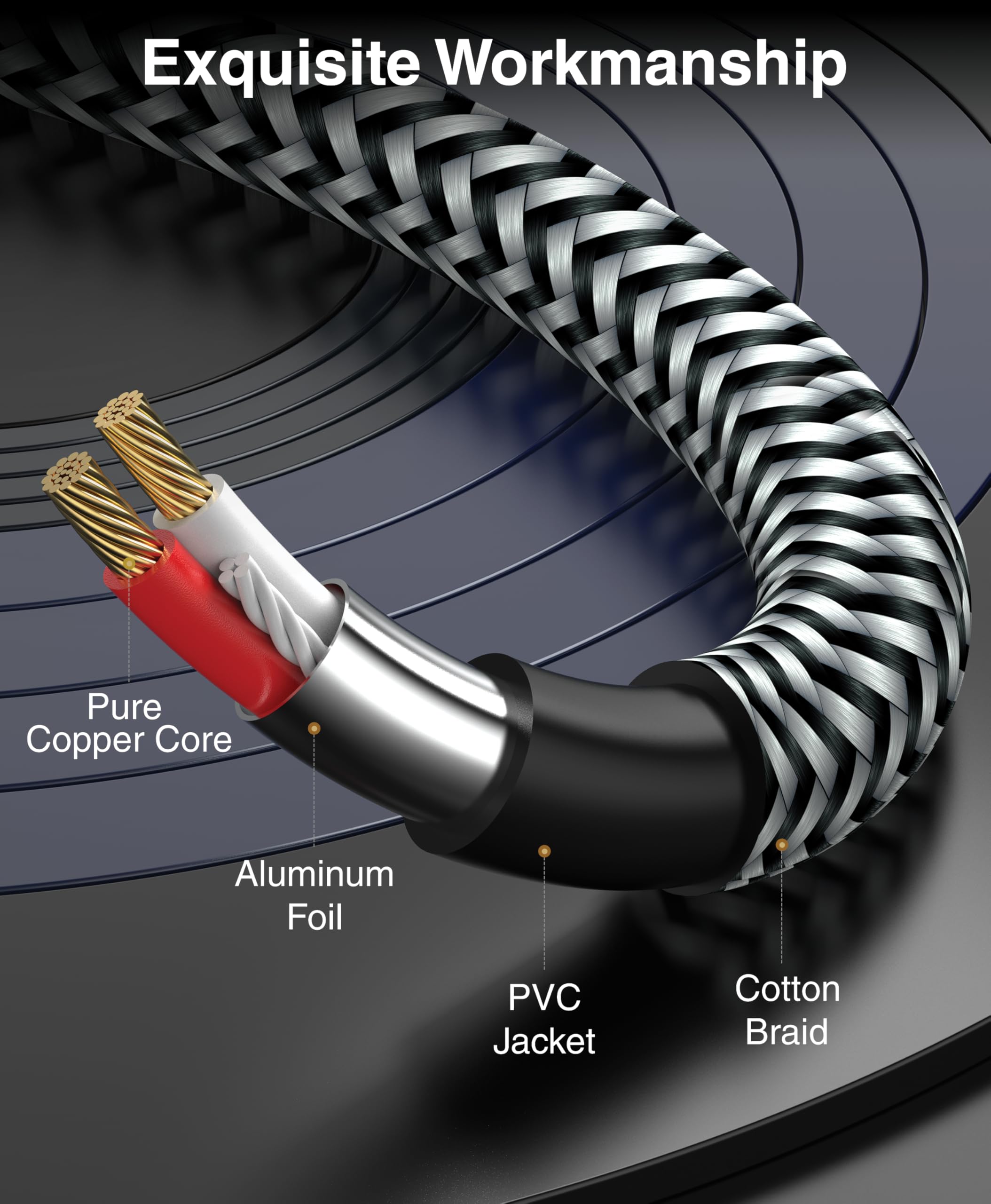 Doté de connecteurs plaqués or 24K et d'un boîtier en alliage de zinc, le câble offre une conductivité et une durabilité maximales, minimisant la perte de signal lors de la transmission des signaux sonores. Qualité Sonore Câble Nylon Tressé RIIEYOCA 90 Degree Right Angle 3.5mm To 2 RCA Cable 3FT,2RCA Câble Audio 3.5mm Vers RCA Cáp Âm Thanh 3.5mm Sang 2RCA Ugreen 60834 Chất Âm Sắc Nét, Độ Bền Cao Compatibilité étendue : Ce câble répartiteur Y stéréo auxiliaire audio de 3,5 mm vers 2 RCA fonctionne avec les smartphones, les lecteurs MP3, les lecteurs CD, les ordinateurs portables et tout autre appareil numérique doté d'une prise audio de 3,5 mm, ainsi qu'avec les systèmes audio domestiques tels que les amplificateurs ou les récepteurs dotés d'une prise RCA. Excellente qualité sonore : Le câble 3,5 mm vers 2 RCA transmet le son en stéréo. Par rapport aux connecteurs droits, cette conception à angle droit de l'éclatement RCA permet d'économiser de l'espace.