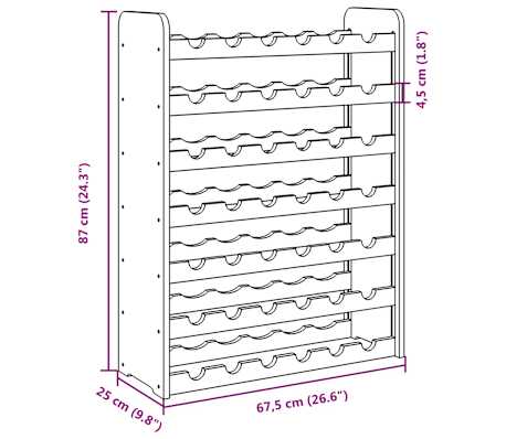 Peut contenir jusqu'à 42 bouteilles de vin (bouteilles non incluses) , Assemblage requis : oui Meuble Vin Pin Brut Générique Casier à Vin 67,5x25x60 Cm Bois De Pin Massif,Casiers à Bouteilles,4.6KG-4007557 Idéal Cave Cuisine Bar Salle à Manger Le bois de pin massif est un matériau naturel magnifique. RHO - Casiers à bouteilles - Armoire à vin Gris 23x34x61 cm Bois de pin... Design de panneau ondulé : le design de panneau ondulé peut mouiller le liège pour rendre le vin frais. Matériau : bois de pin massif (non traité) Casier à vin 20 bouteilles 48x18x52 cm SALBRIS noir mat (6751612... Chaque niveau peut contenir 6 bouteilles. Le bois de pin a un grain droit et les nœuds donnent au matériau son aspect caractéristique et rustique. Dimensions du porte-bouteille : 14 x 45 mm Rangement Vin Horizontal Rangement Vin 6 Niveaux - Casier Bouteilles Bois Pin - 72 Bouteilles Max étagère Bouteilles Pin Grand espace de rangement : l'étagère à vin comprend 7 niveaux qui peuvent contenir jusqu'à 42 bouteilles de vin. Peut contenir jusqu'à 42 bouteilles de vin (bouteilles non incluses), Assemblage requis : oui