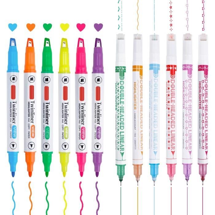 Stylo surligneur courbe, stylos surligneurs qui font des motifs, stylos Outil Dessin Courbes Pour Notes 6/12 Surligneurs Courbes, 6 Marqueurs Couleur Avec 6 Formes Différentes Courbes, Crayons Fins Pour écriture, Notes, Dessin, Scrapbook, Art, Bureau, école Stylos Créatifs Pour Notes Les 8 couleurs sont vives et gaies. Parfait pour agrémenter les bullet journals, les cartes de vœux, ou même pour que les enfants s'amusent à colorier. Un peu d... La fonction de marquage courbé spécialement conçue pour les enfants résout le problème que les stylos fluorescents ordinaires ne peuvent pas dessiner des lignes artistiques. KINBOM 6pcs Stylos Surligneurs Courbes, Colorés Lot Surligneurs Stylos... Il peut être utilisé pour le marquage en classe, les annotations de devoirs, et plus encore, aidant les créations artistiques des enfants à devenir plus imaginatives et inspirantes. Fabriqué en matériaux de haute qualité, présentant 8 couleurs fluorescentes, avec encre à séchage rapide, adapté au carton, au papier d'impression et à divers autres types de papier.