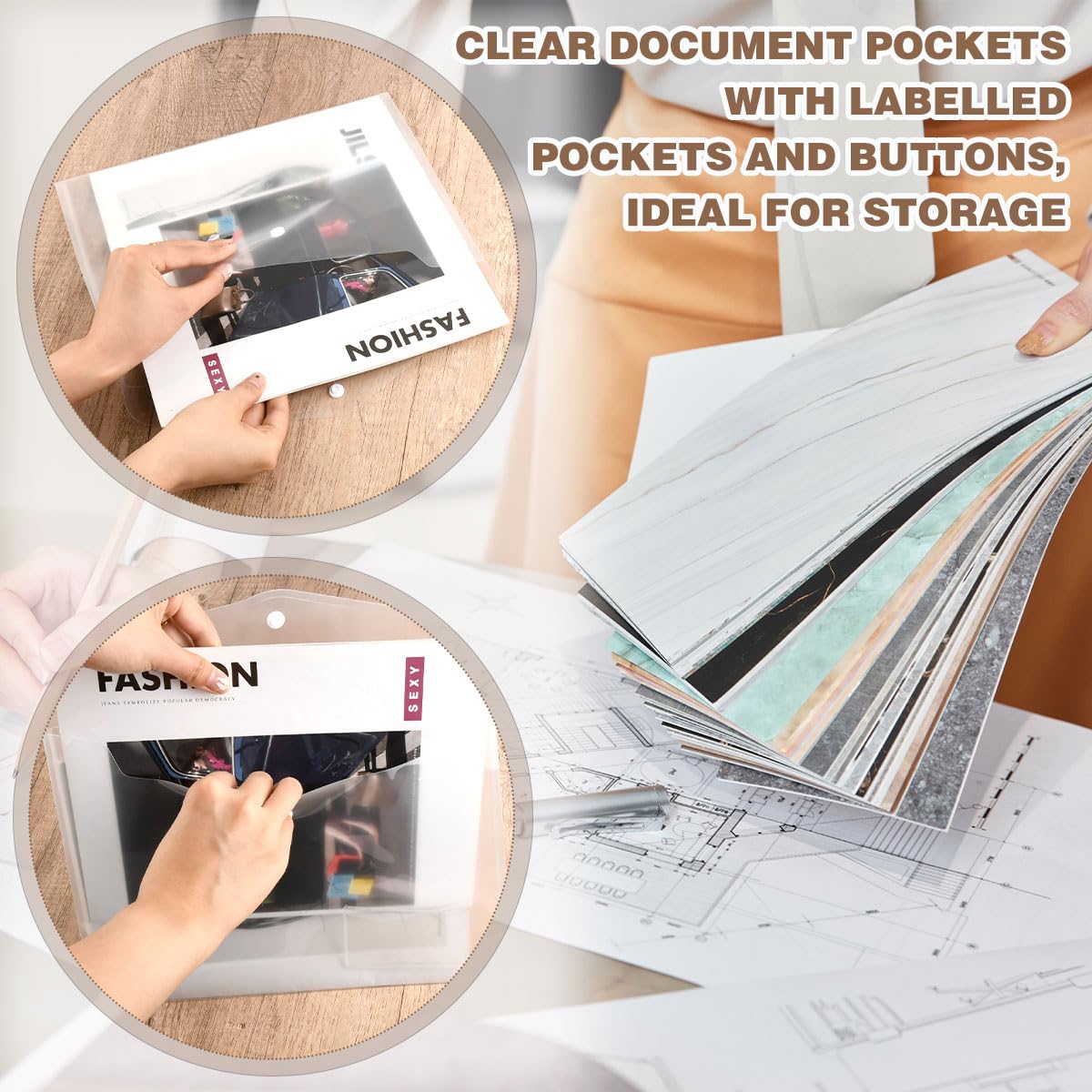 Pochette En Plastique Transparente 12 Pochette Plastique A4 Classeurs Et Chemises, 6 Couleurs Pochettes Transparentes, Porte-documents Bouton Avec 11 Trous Et Poche Pour étiquette Pochettes Plastiques Perforées A4 Classeur A3 Pochettes Perforées En Plastique Transparent Avec Fermeture à Bouton Pochette A3 Plastique Le pochette plastique classeur a un large éventail d'utilisations : à l'école, à la maison, au bureau, en voyage d'affaires, etc. Le pochette classeur transparente a4 peut également être utilisé pour le stockage sécurisé. En même temps, le pochette document a4 peut stocker en toute sécurité des documents, des lettres, des cahiers et d'autres articles divers pochette classeur a4 est parfait pour l'organisation des documents de tous les jours. Pochette Plastique A4 avec Rabat Fabriqué Dans un Matériau de Haute Qualité Ces farde chemise plastique a4 sont fabriqués en polypropylène de haute qualité, imperméable à l'eau et à l'humidité, très durable et adapté à une utilisation à long terme. En même temps, le pochette document a4 peut stocker en toute sécurité des documents, des lettres, des cahiers et d'autres articles divers. Il suffit de décoller le bouton-pression ou de le maintenir enfoncé pour utiliser ou fermer le pochette plastique a4 classeur. [ Matériaux de Qualité ] Classeur pochette plastique a4 est fabriqué en polypropylène de haute qualité, imperméable et résistant à l'humidité, pas facile à déchirer, robuste et durable, classeur plastique a4 souple est un outil indispensable pour organiser vos documents. [ Large Utilisation ] Classeur pochette plastique a4 de multiples utilisations, dossier transparent a4 est parfait pour stocker des documents, des lettres, des carnets de notes et d'autres articles divers. [ Facile à Utiliser ] Classeur avec pochette transparente est très pratique pour vous de stocker vos documents quotidiens ainsi que des livres, trier vos documents dans classeur plastique pour éviter l'encombrement et vous obtenez un cpochette porte document a4 léger et portable. Les dossiers en plastique A4 pour documents peuvent contenir jusqu'à 150 feuilles de papier A4. Les portefeuilles en plastique A4 transparent avec bouton...