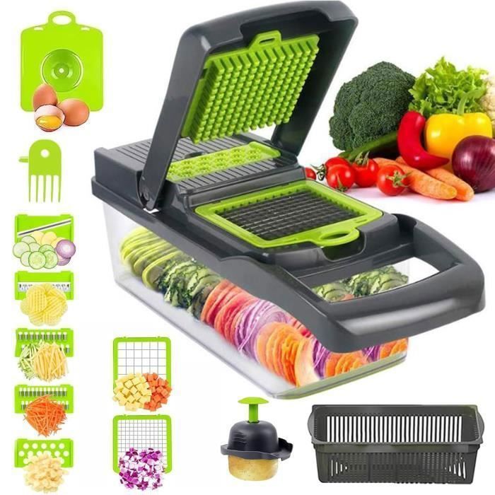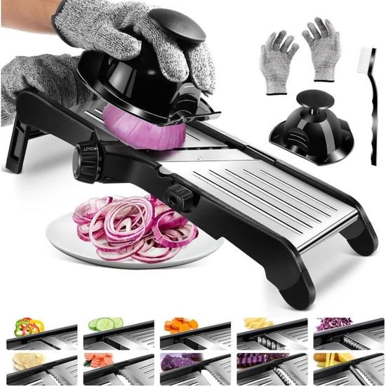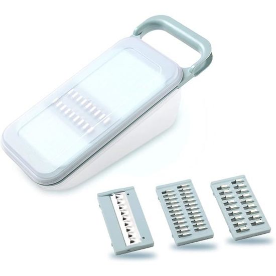 Réalisez d’impressionnants rubans de légumes uniformes pour des sautés et des garnitures époustouflantes. Mandoline de Cuisine, Tout en 1 Coupe Légumes Multifonctions Lames en acier inoxydable de qualité supérieure : Fabriquées en acier inoxydable résistant à la rouille, elles offrent des performances durables et une préparation des aliments sûre pour toutes vos tâches culinaires. Mandoline Multifonction Acier Inox 12 En 1 Mandoline Cuisine, Mandoline Professionnelle Cuisine Avec 6 Lames En Remplaçables, Coupe-Légumes Multifonction Pour Trancher, Couper Et Râper Les Légumes Ustensile Cuisine Professionnel Nettoyage sans effort, à chaque fois : Passez moins de temps à frotter, plus de temps à savourer vos créations. Râpez les fromages à pâte dure sans effort pour une soirée pâtes parfaite. 4 lames interchangeables pour une maîtrise culinaire exceptionnelle : Créez sans effort des râpages fins, des tranches épaisses, des filets grossiers et des râpages grâce à ces 4 lames en acier inoxydable dédiées Idéal pour la préparation rapide de repas, la cuisine saine, les salades, les garnitures, le camping et les pique-niques. 4 lames interchangeables pour une maîtrise culinaire exceptionnelle : Créez sans effort des râpages fins, des tranches épaisses, des filets grossiers et des râpages grâce à ces 4 lames en acier inoxydable dédiées. Mandoline 4 en 1 - Compacte et polyvalente pour trancher parfaitement vos fruits et légumes ! - 4 lames interchangeables à clipser pour trancher et râper : trancher fin (lamelles 1 mm), trancher moyen (lamelles 3 mm), râper fin (julienne fine) et râper moyen (julienne épaisse) - Lames guillotines dentées en biais pour trancher sans... Emballage compact pour les pique-niques ou le camping : ingrédients frais, préparés sur place. Réalisez des tranches de pommes de terre uniformes pour des gratins ou des chips impeccables. Réalisez toutes vos recettes avec précision ! Caractéristiques :Toutes les coupes en quelques secondes : Passez instantanément d’herbes délicates à des légumes racines nourrissants ou à un râpage de fromage parfait, sans couteau. Poignée ergonomique confortable : Dotée d'une poignée profilée antidérapante conçue pour un confort et un contrôle optimaux pendant l'utilisation.
