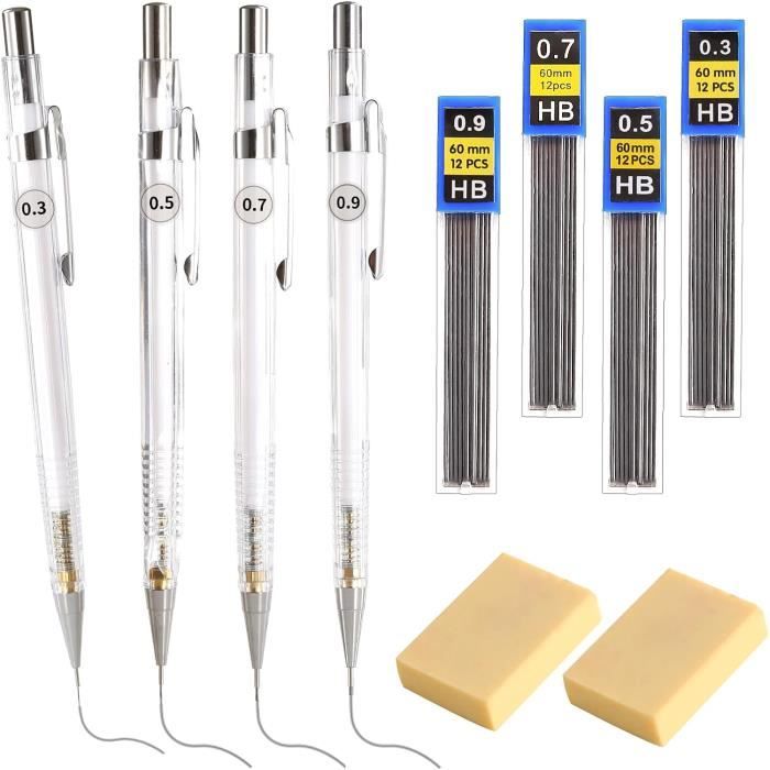Ce lot de stylos mécaniques est adapté à toutes les applications d'écriture courantes telles que les notes et les dessins. Porte Mine 0.3 Nicpro Lot De 6 Porte-mines Pastel De 0,5 Mm Large application : le lot de porte-mines est adapté à toutes les applications d'écriture générales telles que les notes et le dessin. Stylos Mécaniques étudiants 6 Métal Porte-Mines 0,5, 0,7, 0,9 Et 2Mm (2B Hb 2H), Art Crayon Porte Mine Pour Dessin Nos stylos mécaniques sont équipés d'un clip en métal portable qui vous permet de les fixer facilement sur des documents et des livres. Contenu de l'emballage : 4 porte-mines en 4 tailles : 0,3 mm, 0,5 mm, 0,7 mm, 0,9 mm, 5 tubes de mine HB et 2 gommes. Nicpro Ensemble de porte-mines en métal 0,9 mm avec étui, 3 crayons à dessin MP1000 de 0,9 mm, 8 tubes de mine HB, 3 gommes, recharges de gommes pour l'écriture... Idéal pour les étudiants, les enseignants et les architectes Le design de la gomme cachée sur le dessus du crayon facilite l'élimination des erreurs et assure un travail plus efficace 4 tailles de crayons disponibles le lot comprend 4 porte-mines de différentes tailles de mines (0,3, 0,5, 0,7 et 0,9 mm), 4 tubes de recharge (12 pièces par tube, 48 pièces au total) et 2 gommes, 10 pièces au total Design soigné : le porte-mine adopte une poignée en spirale antidérapante qui est résistante aux chutes et durable. Matériau de haute qualité : la mine de crayon est fabriquée en résine, solide, résistante, écriture lisse et durable. Facile à transporter et à utiliser : le porte-mine est petit et léger, ce qui vous permet de le transporter avec vous sans stress. Vous pouvez choisir des mines de rechange de différentes tailles selon vos besoins. Vous pouvez l'utiliser dans de nombreuses occasions, par exemple au bureau, en classe, à la maison, etc.