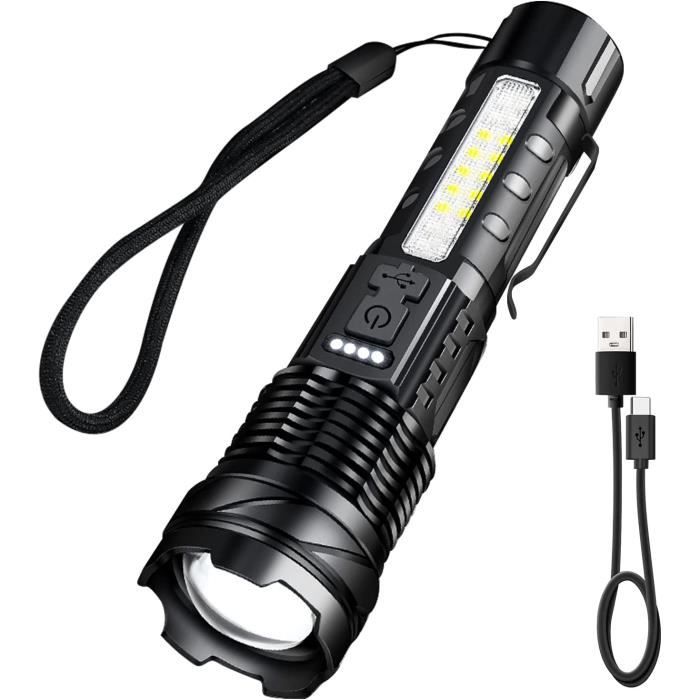 Vous aurez ainsi les mains libres pour effectuer toutes vos tâches. Lumière vive et réglable : 100 lumens de lumière avant, jusqu'à 450 lumens de lumière latérale, 6 modes d'éclairage de différentes intensités, idéale pour une utilisation dans la maison, la voiture, l'atelier, le camping ou les activités de plein air Happy-Lampe frontale extérieure Lampe Frontale LED COB Lumière d... Clic 5: Stroboscope rouge/bleu , Double clic: Stroboscope Sa batterie rechargeable de 450 mAh vous offre jusqu'à 12 heures d'autonomie. Base magnétique Grâce à sa base magnétique, vous pouvez le fixer sur n'importe quelle surface métallique, libérant ainsi vos mains pour effectuer vos tâches plus efficacement. Découvrez la lampe torche LED multifonction ITAL T7 Cette lampe torche deviendra le compagnon idéal en toute situation. Lumière vive avec différents modes d'éclairage Lumière Frontale La lumière frontale (10 LED de 100 lumens) s'allume dès la première pression sur le bouton. Lampe Torche Rechargeable USB-C Lampe Torche Multifonction Puissante Beast, 6 Modes D'éclairage, Petit Lampe Multifonction ITAL T7 6 Modes Fabriquée en aluminium et ABS, résiste aux chocs, aux chutes et aux éclaboussures, avec indice IPX4 Lampe Torche Led Rechargeable Multifonction Avec Zoom Télescopique... La batterie intégrée de 450 mAh peut être complètement chargée en seulement 1 heure, offrant jusqu'à 12 heures d'utilisation continue. Clip multifonction Gardez votre lampe torche toujours à portée de main, même en pleine activité, pour éclairer votre chemin grâce au clip intégré qui vous permet de l'attacher à votre ceinture, votre chapeau ou votre sac à dos. Clic 2: Lumière latérale faible Lampe torche multifonction rechargeable T-torch CampGlow Haba Design et technologie : haute puissance avec technologie COB (Chip on Board), offrant un éclairage uniforme et lumineux. Elle émet une lumière puissante et vive, comprise entre 100 et 450 lumens, et dispose de 6 modes d'éclairage facilement sélectionnables d'un simple bouton. Caractéristiques et accessoires Chargement rapide USB-C Chargement rapide et facile grâce au port USB-C. Petit format Son format compact (111 x 25 x 8 mm) et son poids léger (38 g) le rendent facile à ranger, à transporter et à utiliser. Équipée et compacte : grâce à son clip et sa base magnétique, vous pouvez travailler les mains libres. La cinquième pression active les feux stroboscopiques rouge et bleu. Chaque pression augmente l'intensité de 3 niveaux. Clic 4: Lumière latérale fort Vous pouvez choisir entre un éclairage frontal ou latéral, selon l'utilisation ou l'activité que vous pratiquez. Comprend un port USB-C pour une charge rapide et pratique où que vous soyez.