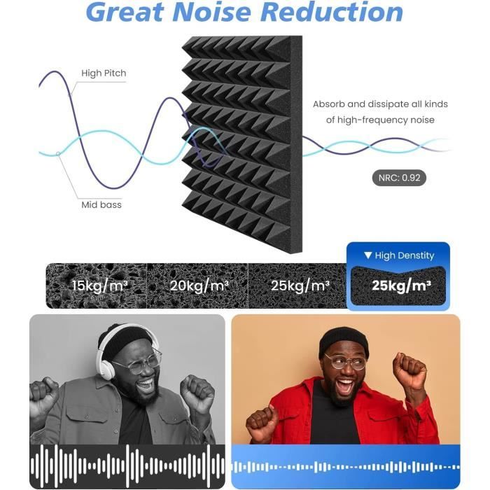 TOGEVAL 2 pièces Coussin Mousse Enceinte Anti-vibration Bloc coussins antivibratoires conviennent à une utilisation dans de nombreux environnements. Accessoire Home Studio Pas Cher 6 Pièces 30 CM étanche Anti-humidité Insonorisation Mousse Panneaux De Mousse Acoustique Cale Absorption Studio KTV Accessoires 12 12 2 Pouces Panneaux Anti-vibration Informations sur les marchandises Fabriqué à partir de matériaux sélectionnés, ce coussin offre une excellente insonorisation et une excellente absorption des chocs, protégeant ainsi vos objets de valeur des dommages et réduisant bruit. Mousse Acoustique, Panneaux Insonorisants Polyuréthane Réduction Du... SWANEW Panneau insonorisant Panneaux de mousse acoustique 24 pièces... Large application : ces panneaux d'insonorisation sont largement utilisés dans divers contextes, notamment à la maison, dans les ktv, dans les studios, etc Matériau d'insonorisation : fabriqués à partir de matériaux sélectionnés, ces coussinets réduisent efficacement bruit et les vibrations, protégeant ainsi vos objets des dommages, Facile à installer : ces panneaux d'insonorisation sont faciles à installer et peuvent appliqués rapidement et facilement sur vos articles, offrant une protection instantanée, - : ces coussinets anti-vibrations sont portables et , ce qui les rend faciles à utiliser et pratiques à ranger lorsqu'ils ne sont pas utilisés. Absorption des chocs : ces coussinets anti-vibrations absorbent les chocs et les vibrations, protégeant vos articles des dommages causés par un impact ou une collision, forfait comprend 2 x panneaux acoustiques Caractéristiques - Utilisation polyvalente : ces coussinets peuvent utilisés dans une variété d'environnements, y compris les maisons, les bureaux et les véhicules, offrant une protection complète pour vos biens., Coussin insonorisé.