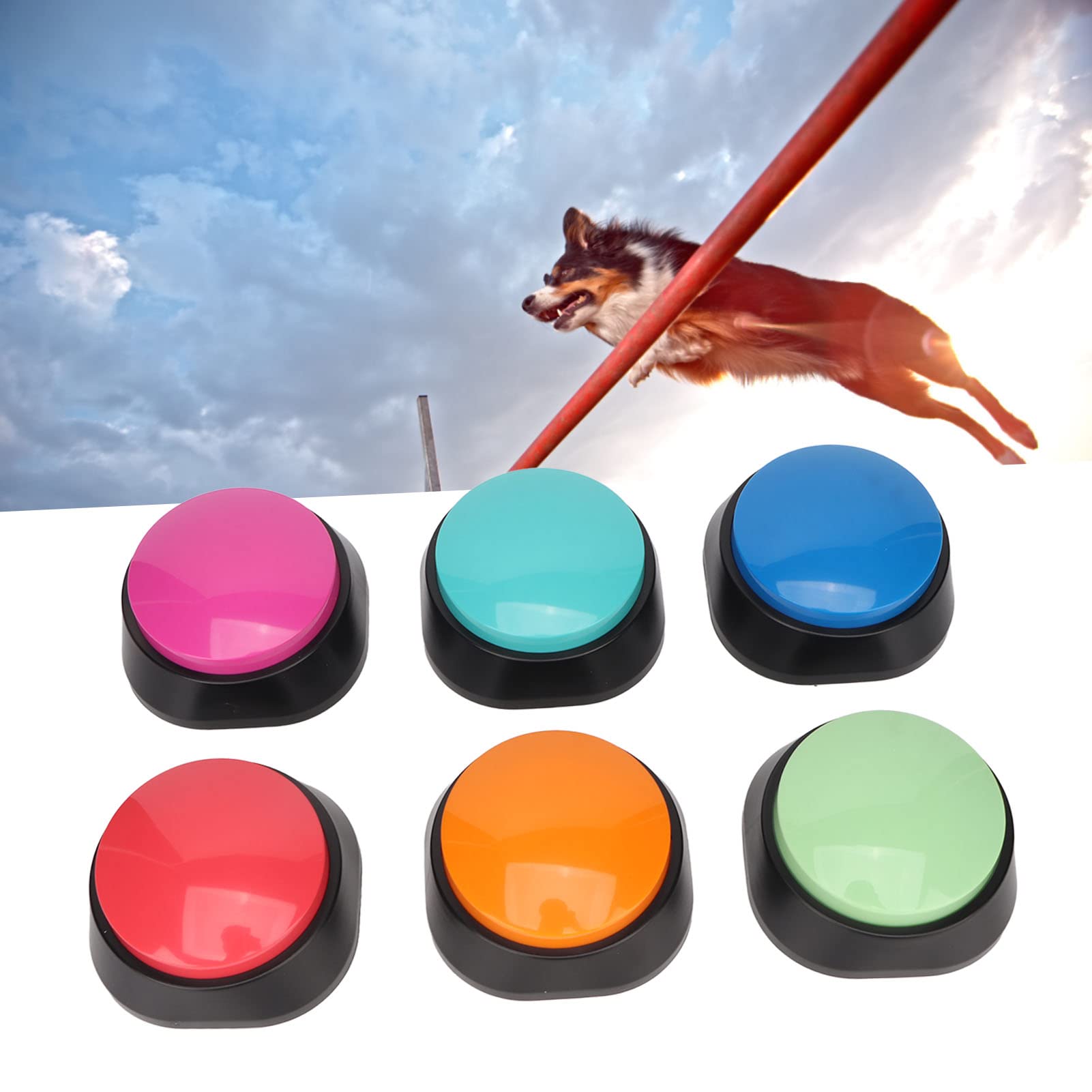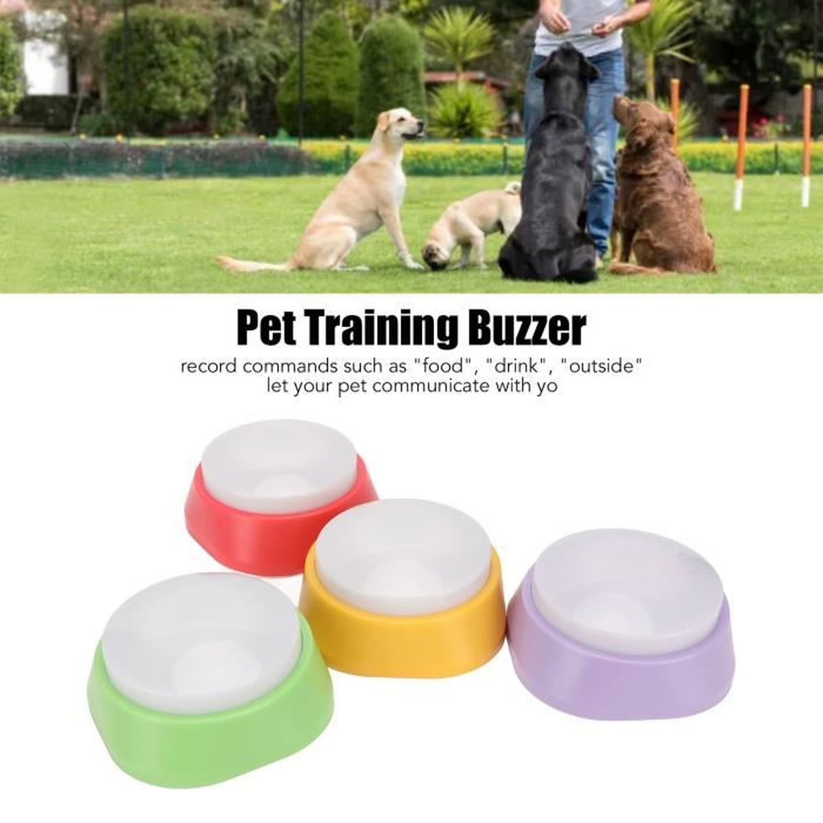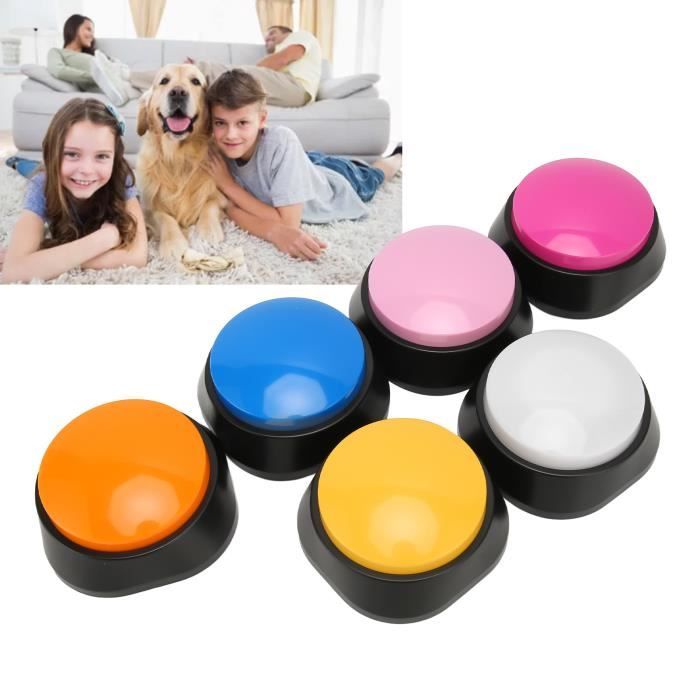 Enregistrez facilement vos propres messages vocaux (par exemple, « Les chiens mangent !, », « Assis !, »). ZER-Bouton d'enregistrement vocal - Buzzer d'entraînement pour animaux... D'une simple pression, l'appareil émet un bip sonore et lit l'enregistrement. Veuillez permettre une différence de 0,5 à 1 pouce en raison de la mesure manuelle. Kit Boutons Couleur Dressage DUBUOZA 6 Pièces Buzzer Enregistrable,Bouton Enregistreur Jeu Chat Que ce soit pour la communication ou le dressage des animaux de compagnie, il peut localiser la cible plus rapidement et avec plus de précision. Description du produit Fonctionnalités: Il existe 6 couleurs différentes et vous pouvez enregistrer différentes séries d'exercices en fonction de la couleur. L'enregistreur vocal rend le dressage de votre animal plus chaleureux et plus efficace, grâce à une voix claire et forte qui va droit au but. LONGUE DUREE, SAUVEZ VOTRE COEUR & DURABILITE : Buzzer Enregistrable Faible consommation d'énergie, piles remplaçables intégrées (deux piles 7 AAA). Notez que les piles doivent être préparées par vous-même, la liste d'emballage ne contient pas de piles. Spécifications: Nom du produit: Buzzer Enregistrable Couleur: Rouge + Jaune + Rose + Orange + Vert + Bleu Taille: 8., 8×4., 2cm Poids: 430g Matériel: ABS Convient pour: Formation des animaux de compagnie Emballage inclus 6×Buzzer Sonore Remarque: Ces articles sont réels, mais en raison de différents éclairages ou affichages, il y aura inévitablement une légère différence de couleur et la couleur du produit dépendra de la situation réelle. (1 pouce = 2,54 cm) Mode d'emploi Formation des animaux de compagnie Enregistrez facilement vos propres messages vocaux (par exemple, « Les chiens mangent ! », « Assis ! »). L'enregistreur vocal rend le dressage de votre animal... Lorsque vous dressez votre animal de compagnie, enregistrez d'abord l'action à dresser. COMPACT ET PORTABLE, APPLICATIONS LARGES : 6 Buzzer Enregistrable de couleurs différentes, vous pouvez enregistrer différents ordres en fonction des couleurs, parfait pour le dressage des animaux de compagnie. Boîte de son enregistrable pour animaux de compagnie,bouton roi prudent
