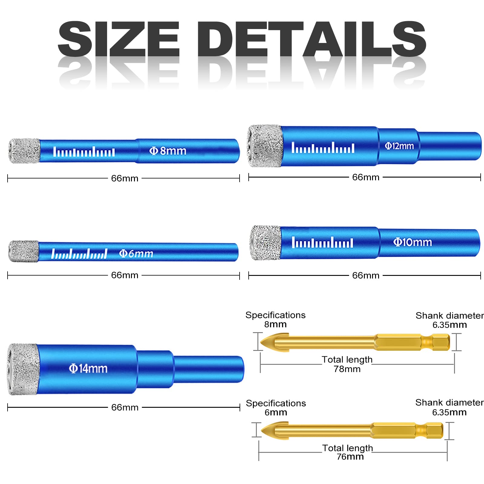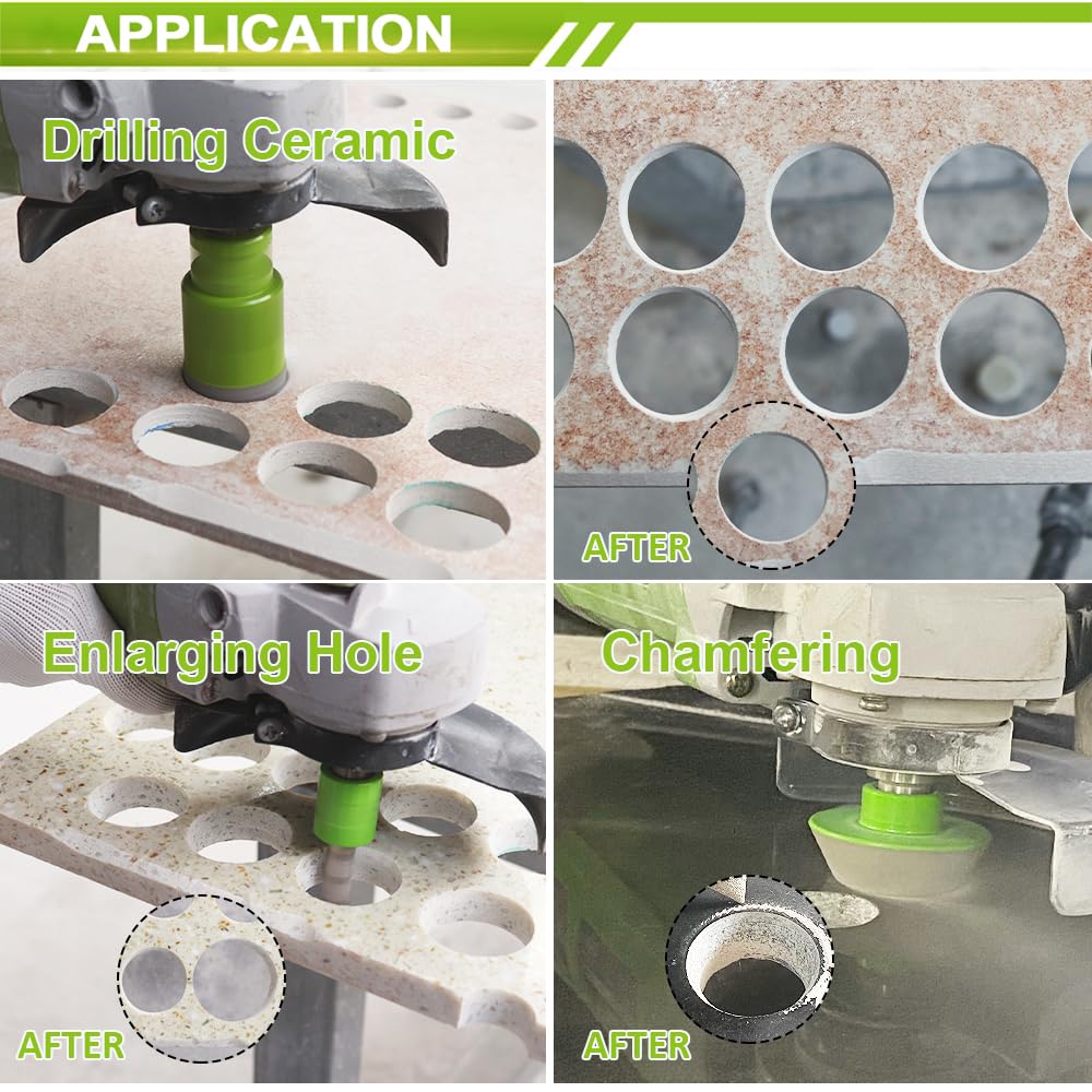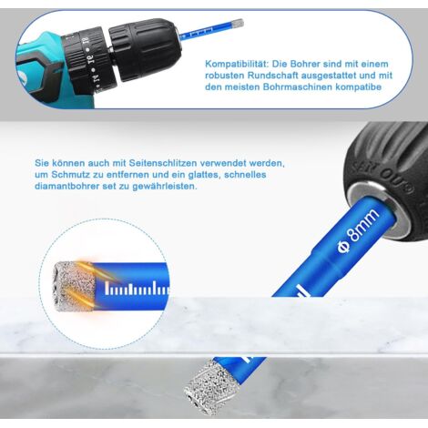 DPZO Foret Diamant, Foret Diamant Carrelage, Foret Gres Cerame Forêt Lors du perçage humide, l'eau refroidit la surface de coupe afin de réduire les pertes. Forets Diamant Carrelage 6 Pièces Foret Diamant Carrelage, Meche Carrelage, 6, 8, 10 Kit Perçage Carrelage Marbre Granit Meche carrelage offre une excellente résistance à l'usure et aux hautes températures pour garantir une stabilité optimale en fonctionnement continu Foret diamant cylindrique M14 Avalon 20 mm Perforation à sec de... Lytool Meche Carrelage,10 Pièces Meche Verre,Foret à Verre, Mèches pour... Trépan Diamant Gérez facilement le perçage de carrelage, le traitement de la verrerie, l'installation de marbre dans la salle de bain et d'autres besoins Remarque : Le foret de mèche carrelage 14mm ne contient pas de cire de refroidissement ; il ne peut donc être percé qu'à l'eau Remarque : L'utilisation d'une machine à faible puissance et à faible vitesse réduira la durée de vie du foret carrelage à porcelaine. Matériaux de Haute Qualité: Foret Diamant Carrelage Fabriqué en grains de diamant de haute qualité et en acier au carbone, il offre une vitesse de coupe plus rapide, une durée de vie plus longue et est doté d'un revêtement antirouille. Large Gamme D'utilisations: Foret Diamant Carrelage Idéal pour le perçage de matériaux durs tels que le carrelage, le verre, le marbre, le granit, le quartz et le carrelage vitrifié. Foret Diamant Carrelage Matériau : Diamant et acier au carbone Longueur : 6,5 cm Couleur : Bleu et doré Contenu : Forets à carrelage de 6 mm, 8 mm, 10 mm, 12 mm et 14 mm et 1 foret en Foret en Alliage de 6 mm