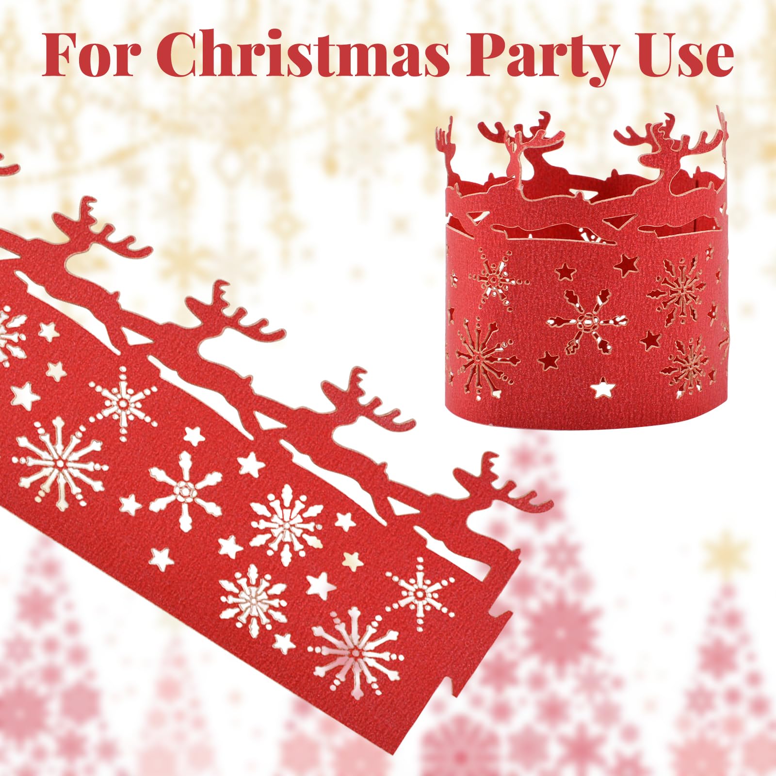 TOYMIS Lot de 6 porte-serviettes de Noël, ronds de serviette de Noël Coffret Cadeau Avec Arc Doré Pin Métallique Doré Ou Forme De Cône De Sapin épinettes Flocon De... Décoration Table Noël Dorée Lot De 6 Ronds De Serviette De Noël En Forme De Renne Dorés Pour Table Décoration Table Flocon Neige Description du produit URROMA Matériau de qualité : le fermoir de serviette est fabriqué en papier de haute qualité, respectueux de l'environnement et sûr. Décoration De Noël, Flocon De Neige Doré Recouvert De Paillettes Brillantes, Sur Fond... 1 Style 1 2 Style 2 3 Style 3 4 Style 4 5 Style 5 Insérez la partie saillante d'un côté dans l'espace de l'autre côté, et enfin mettez la serviette dans l'anneau, vous obtiendrez une décoration parfaite de table à manger. Nombreuses utilisations : ce produit peut être utilisé pour diverses décorations de table de vacances telles que les anniversaires, Noël, les dîners aux chandelles, les fêtes, etc. Fonction pratique : les ronds de serviette jetables permettent non seulement de garder la table bien rangée et ordonnée, mais également de décorer efficacement les serviettes, ajoutant un sentiment de cérémonie aux rassemblements.