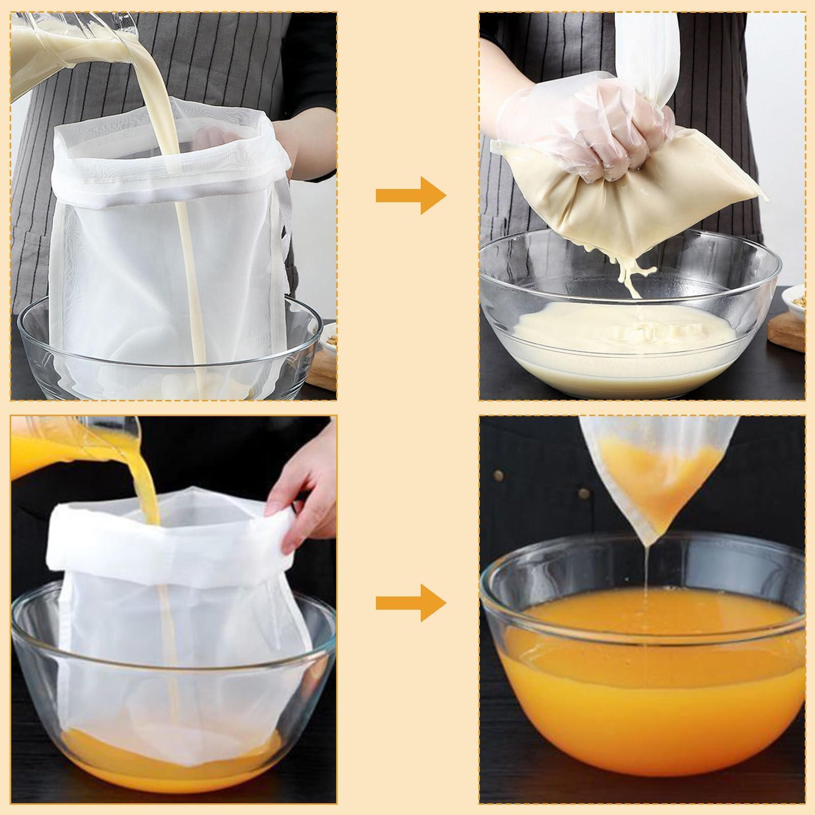 Si vous êtes un nouveau cuisinier ou un chef expérimenté, vous pouvez facilement saisir et apprécier l’expérience de filtration confortable qu’il offre. Filtration Jus Légumes Café Lot De 6 , Réutilisables, 20 × 30 Cm Sacs à Lait De Noix Haute densité et forte filtration Le filet est très fin et homogène., Pas de restes. Présentation du produit Sachets de lait de noix, lot de 6, filtre réutilisable, 20 x 30 cm, lavable avec cordon de serrage Matériaux de haute qualité : nos sacs à lait de noix sont fabriqués en nylon de qualité alimentaire de haute qualité, sûr et inodore et peuvent être en contact direct avec les aliments Il ne laisse aucune odeur ou tache. Le chiffon filtre sèche rapidement et peut être réutilisé pour assurer la propreté et l’hygiène à chaque utilisation. Créez un délicieux lait de noix fait maison et plus encore avec notre sac à lait de noix réutilisable, fabriqué à partir de coton 100 % biologique. Ce sac filtrant de haute qualité est conçu pour vous aider à préparer facilement du lait de noix onctueux et crémeux, du café infusé à froid, des jus et d'autres boissons à base de... Après utilisation, vous pouvez le rincer directement à l’eau propre ou le mettre au lave-vaisselle. Parfait pour les noix, le lait de soja, les flocons d’avoine, le yaourt, le café froid, les fruits, les légumes, le tofu et même les soupes. Facile à utiliser: notre tissu filtrant est léger et facile à utiliser. Lot de 6 sacs à poussière pour aspirateur robot Xiaomi Bot Z10 Pro/L10 Réutilisable: ce tissu filtrant est conçu pour faciliter le nettoyage. L’ouverture large et la conception de bord stable permettent aux utilisateurs d’injecter différents liquides pour la filtration.
