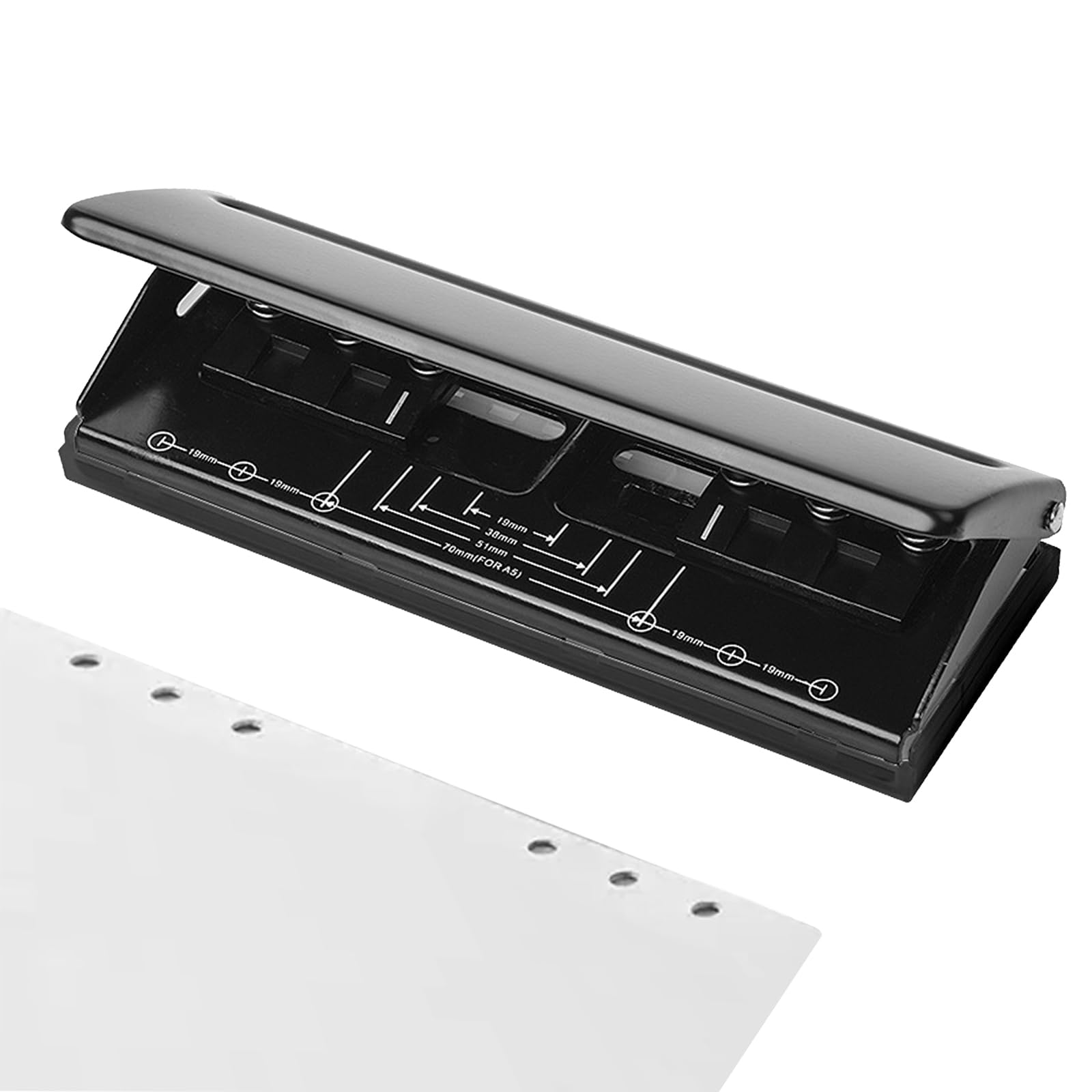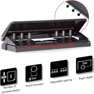 Perforateur - YOSOO - 3 Trous - Capacité 5 Feuilles - Formats B5 A5 A6... Cette perforatrice élégante et noire à 6 trous est un cadeau parfait pour vos amis, votre famille et vos collègues , 5., Conception ergonomique et peu gourmande – Vous pouvez percer des trous avec moins d'effort grâce à la structure du levier de la perforatrice entièrement en métal et à la tête de coupe tranchante en métal en forme de U. Le couvercle de sol en plastique antidérapant peut également contenir des restes perforés que vous pouvez nettoyer en ouvrant simplement la perforation Craftelier Perforatrice Perforateur En Métal Réglable à 6 Trous, A5 A6 A7 6 Ring Perforatrice Réglable A5 A6 A7 La profondeur d'alimentation du papier est de 7 mm. Perforatrice de Bureau 6 Trous, Perforatrice à Distance Réglable... 1., Taille et capacité de perforation : Le diamètre du trou est de 5,5 mm. Perforateur - YOSOO - 3 Trous - Capacité 5 Feuilles - Formats B5 A5 A6