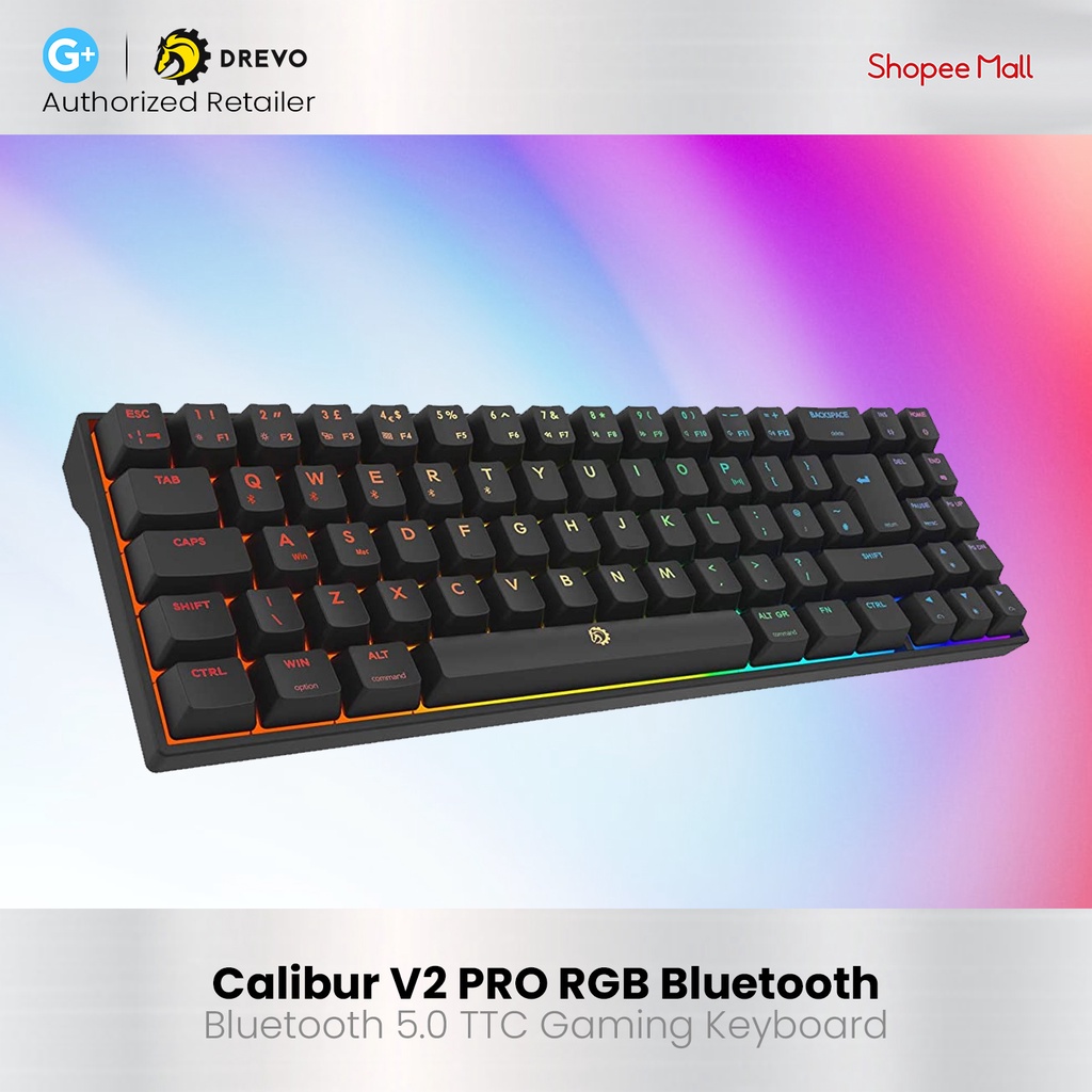 Clavier Mécanique Filaire Sans Fil 24G Bluetooth Type-C Filaire RVB 3 Mode d'emploi DREVO Calibur V2 PRO (Français - 13 des pages Clavier Mécanique Gamer DREVO Calibur V2 Te 60% Clavier De Jeu Mécanique RGB Rétroéclairé, AZERTY Français Avec 72 Touches, Fonctionne Sur PC/Mac, USB Type-C, Commutateurs Outemu Rouge, Noir Clavier Drevo Calibur V2 Pro Bluetooth Rgb Compact Rétro-éclairage RGB Rétroéclairage RGB avant et latéral; 16,8 millions de couleurs RVB; 17 effets de rétro-éclairage RGB. Double connectivité : Connexion sans fil Bluetooth 5., 1 et filaire USB-C. Clavier Mécanique Filaire Sans Fil 24G Bluetooth Type-C Filaire RVB 3... Câble de type C détachable La conception du câble amovible est pratique pour l'utilisation du clavier et le nettoyage du bureau. Grâce au Bluetooth 5., 1, le Calibur V2 Pro assure une vitesse élevée, des transferts rapides et une connexion plus stable et plus fiable que le Bluetooth 4., 0., Design compact 71 touches : Les touches de fonction F sont intégrées dans les chiffres afin de rendre le clavier beaucoup plus compact sans perdre aucune touche de fonction. Caractéristiques attrayantes : Câble USB-C détachable, hauteur de clavier ajustable, touches ABS marquées au laser, prise en charge du logiciel DREVO Power Console, 16,8 millions de couleurs et 17 effets d'éclairage. Modes PC et Mac : Conçu pour les utilisateurs de Windows et Mac.