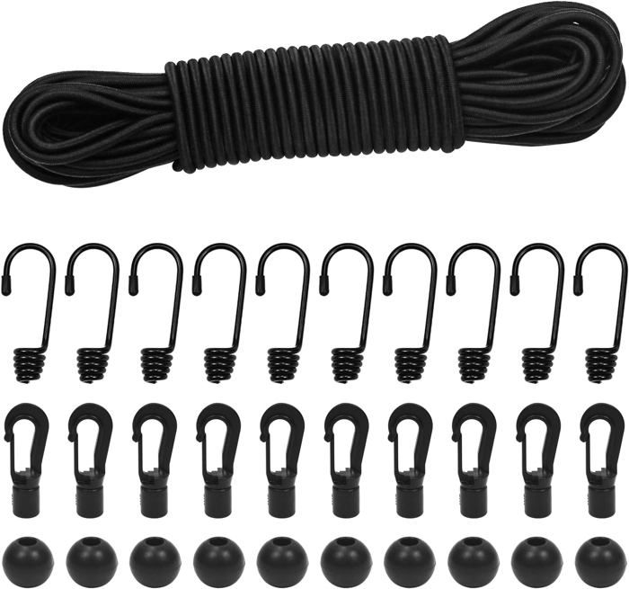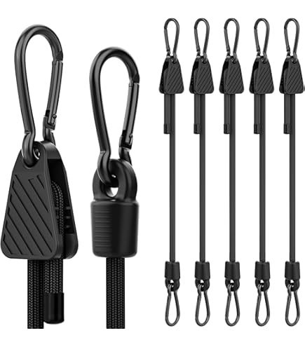 Rangement Extérieur élastique Akicderu Tendeur En Caoutchouc Avec Mousqueton, 60 Cm Avec Mousqueton, 4 Sangles De Serrage Avec Crochets, Tendeur De Bagages Solide, Tendeur En Caoutchouc Avec Crochets Pour Bagages, Camping Et Bien Tendeurs Elastique Avec Crochets Hejo Tendeur Élastique, 35×Noir Bungee Tendeur Boule(20CM) Corde Taille : 20 cmMatériau hautement durable:La corde centrale est fabriquée en latex naturel de grande pureté, qui possède d'excellentes propriétés... Comparé aux crochets en plastique traditionnels,il est plus durable,moins sujet au vieillissement,recyclable et présente des performances stables dans des conditions météorologiques extrêmes. Installation Design Expansion:Our outdoor carabiner elasticated rope est la solution parfaite pour les activités de plein air. Elle est également dotée d'un système d'étirement assemblé,qui permet d'adapter la corde à différentes distances,tailles d'application ou exigences d'assemblage particulières en entrelaçant plusieurs sangles élastiques afin d'allonger la longueur selon les besoins. Matériau hautement durable:La corde centrale est fabriquée en latex naturel de grande pureté, qui possède d'excellentes propriétés d'élasticité et d'antifatigue. Large Scénarios d'utilisation:Nos crochets de tente extérieurs crochets intérieurs peuvent être utilisés pour regrouper des tapis de yoga,fixer des rideaux,suspendre des articles ainsi que pour le stockage d'articles. À l'extérieur,ils peuvent servir à ranger l'équipement d'escalade,à fixer le coupe-vent de la tente,à renforcer l'auvent,à fixer l'auvent de la voiture,à bloquer la tension du filet à balles,à suspendre les objets à l'extérieur,à les regrouper et à les organiser,etc. Elle est facile à ranger et à transporter et prend peu de place dans les bagages,ce qui en fait un compagnon de idéal. Tendeurs Elastique avec Crochets,Sandow Elastique,Tendeur Plat,4 Pièces...